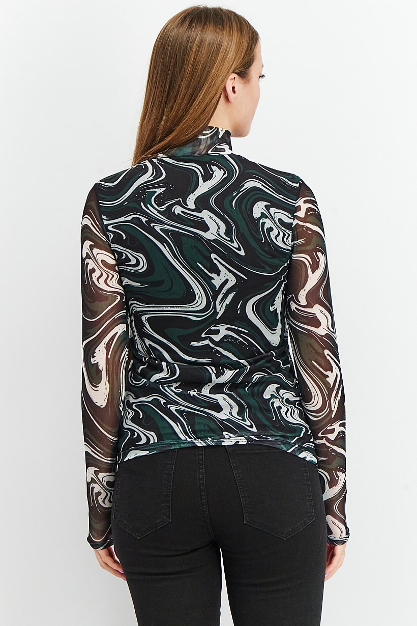 | nameOriginal | Women Mock Neck Long Sleeve Abstract Print Tops, Green/Black/White |