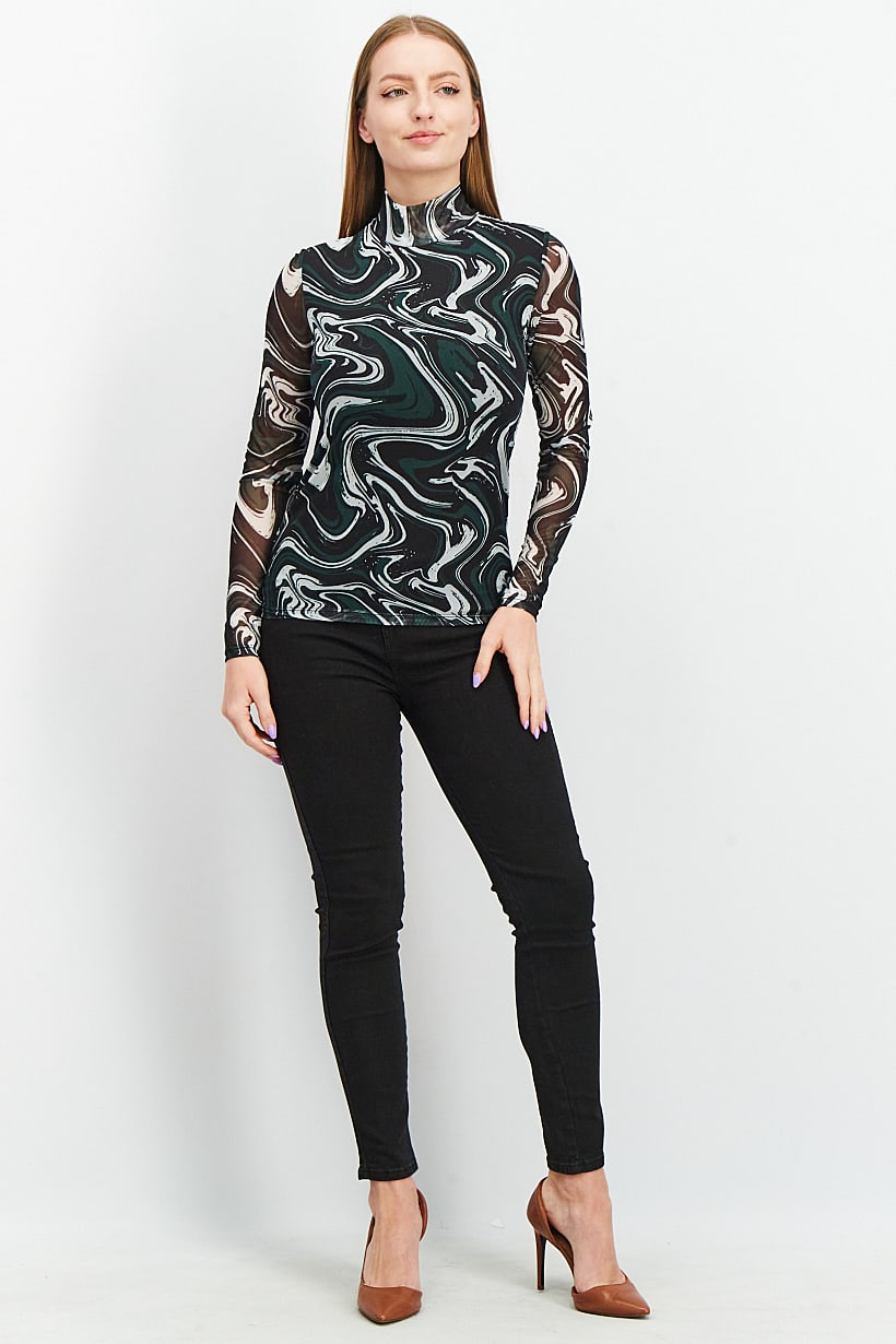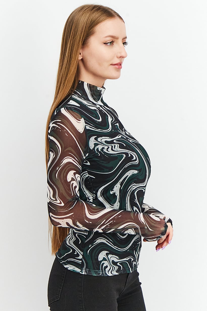 | sub_Categories | Women Clothing, Tops & Tees, women mock neck long sleeve abstract print tops green black white |