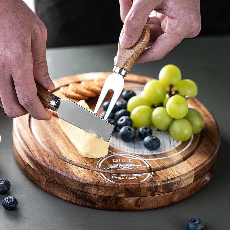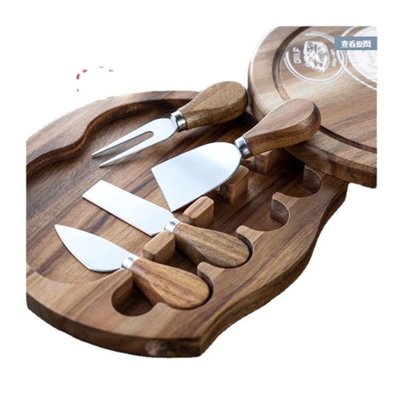 | nameOriginal | # Acacia wood cheese board round box steak knife and fork plate cheese knife and fork box camping plate butter knife western food anvil |