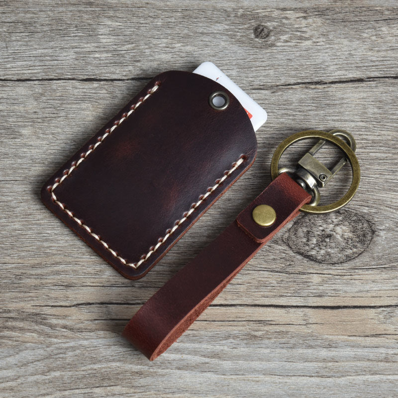 | nameOriginal | Access control card cover vintage first layer cowhide keychain community rectangular round water drop IC induction card bag hand sewing wholesale |