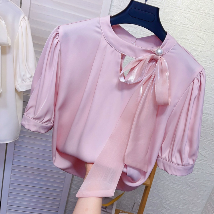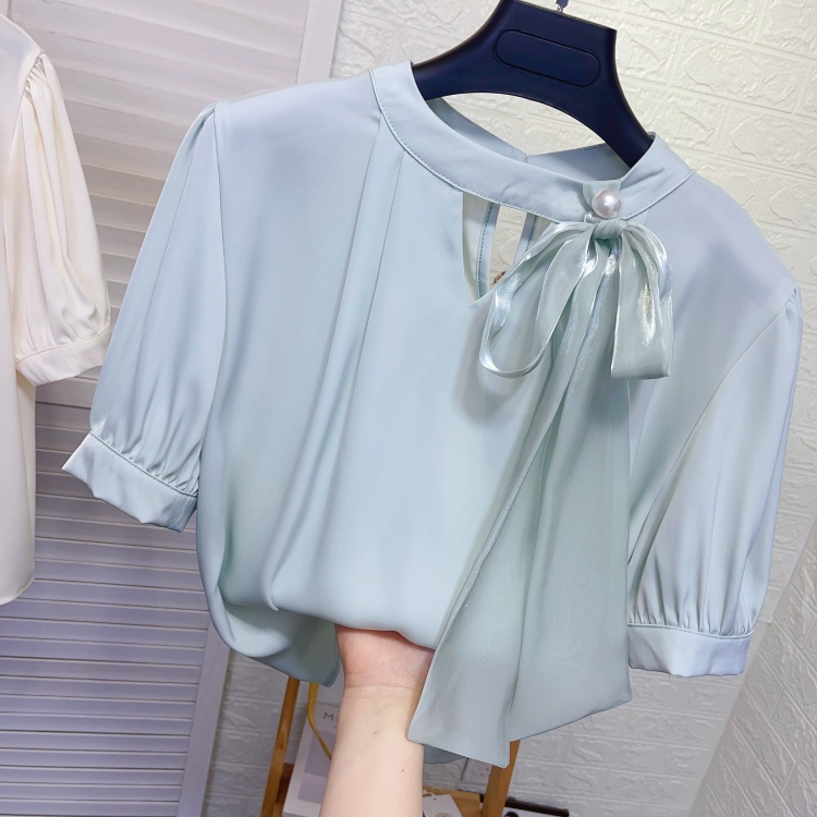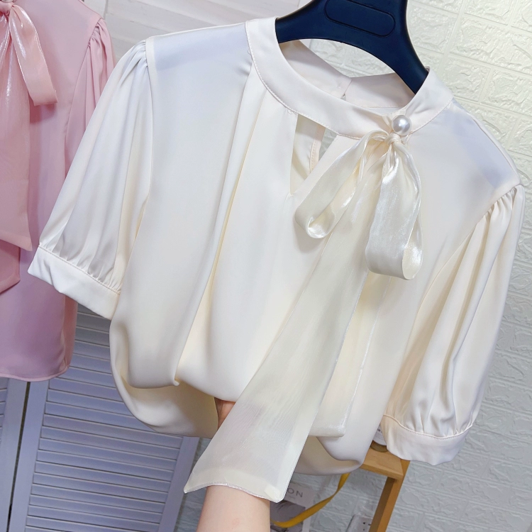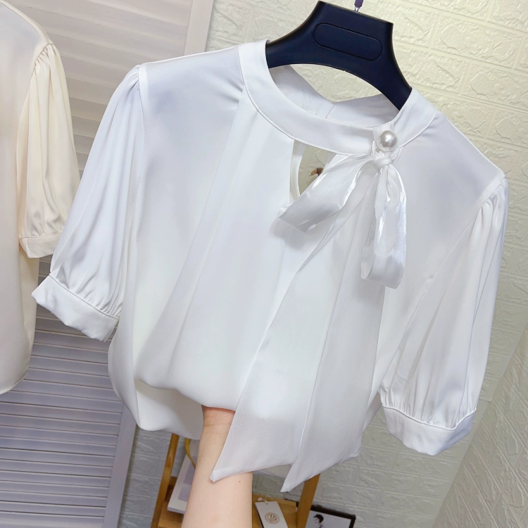 | nameOriginal | Acetate satin short-sleeved shirt with loose silk scarf |