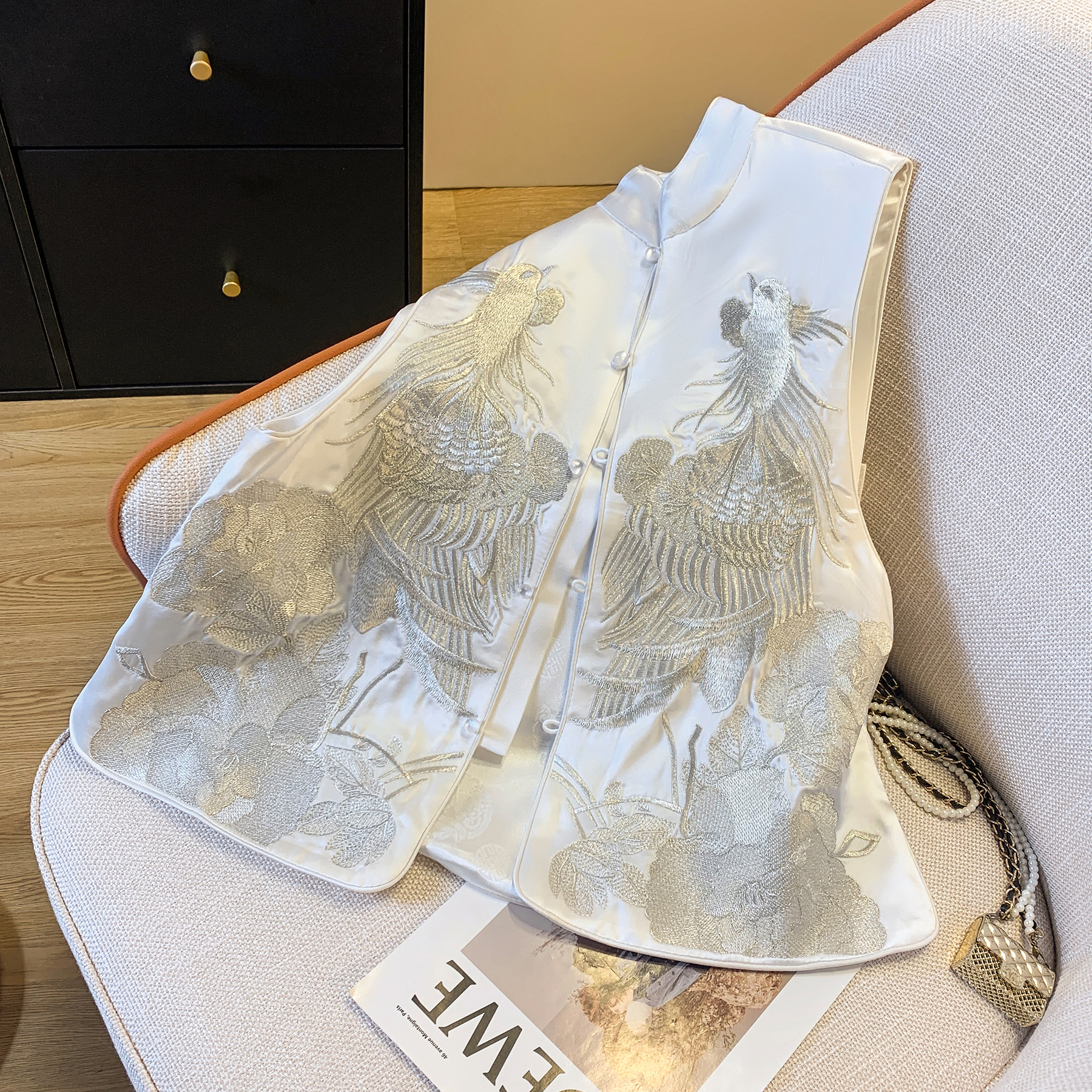 Acetic Acid Satin Vest Women’s Summer Light Luxury New Chinese Style Guofeng Heavy Industry Embroidered Waistcoat
