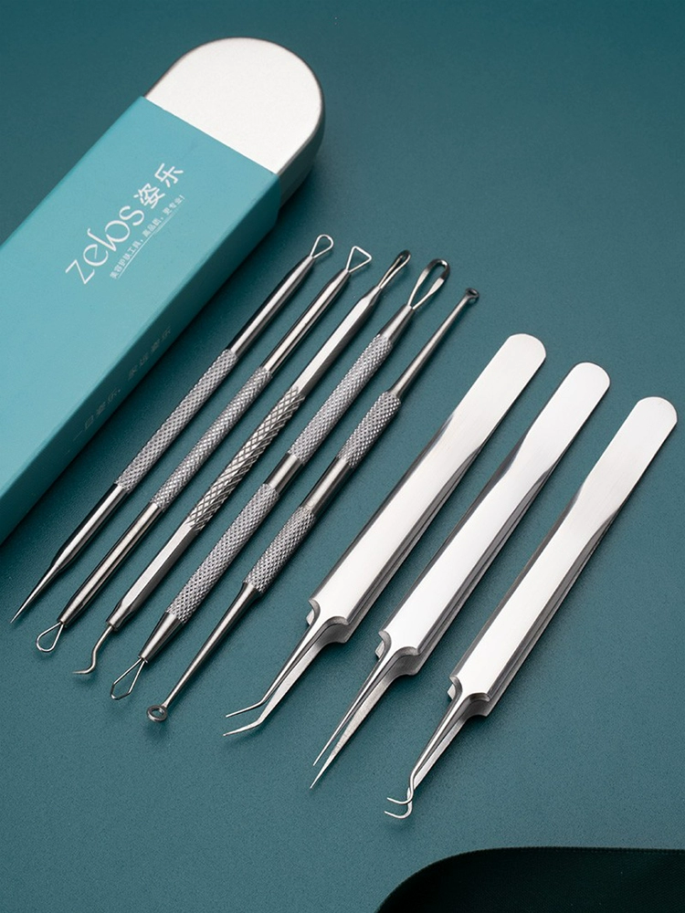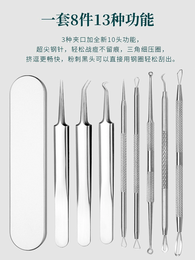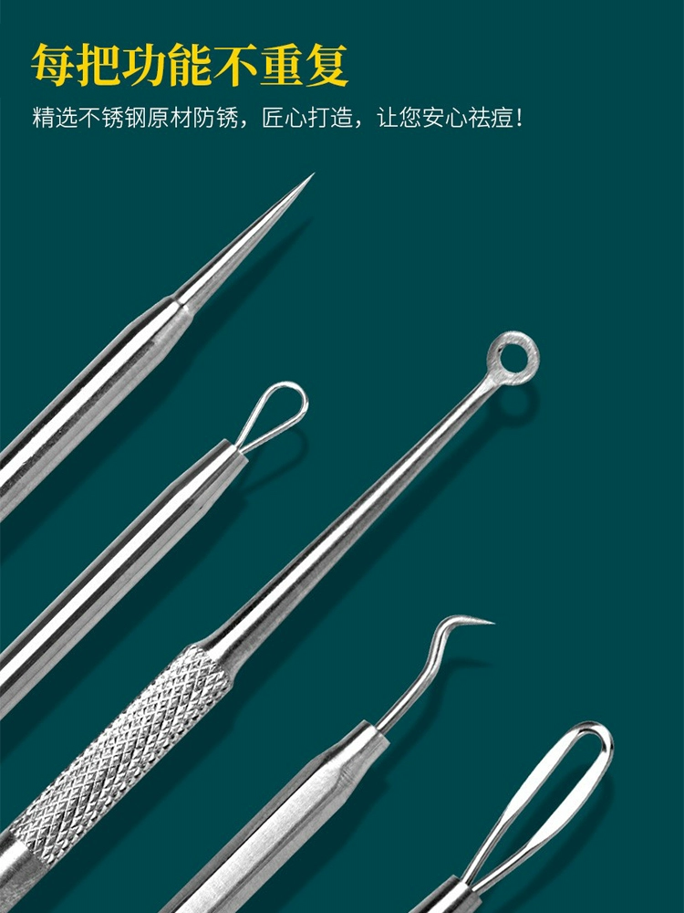 | nameOriginal | Acne needle set for picking and squeezing acne artifacts. Special sterilized tweezers for beauty salons to scrape off acne cells and blackheads. |