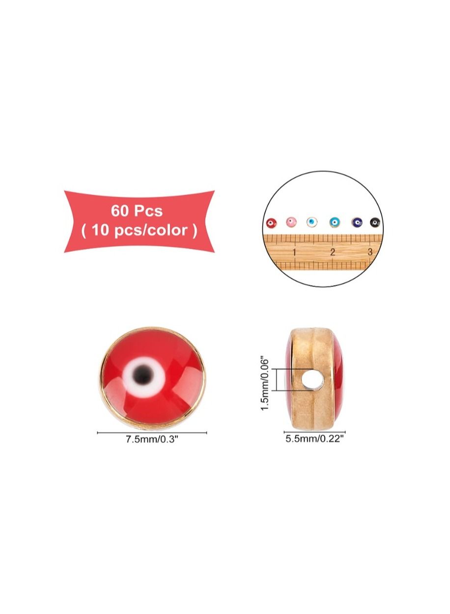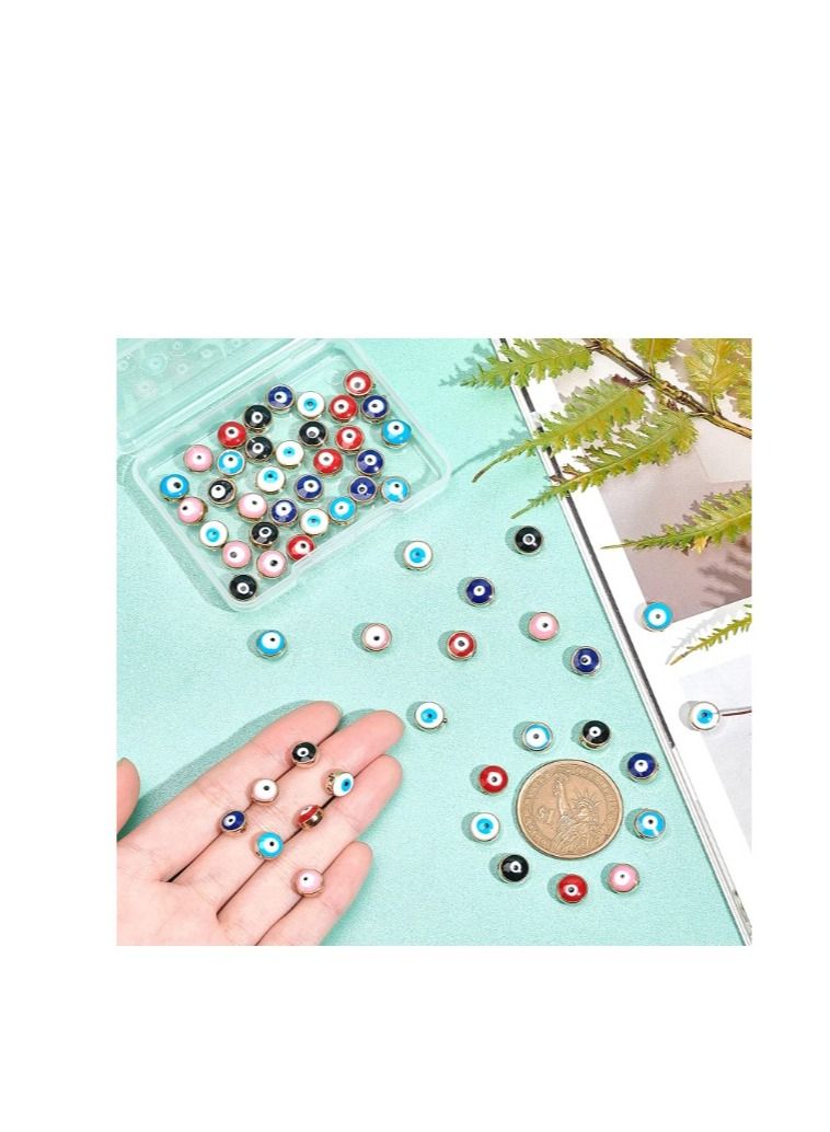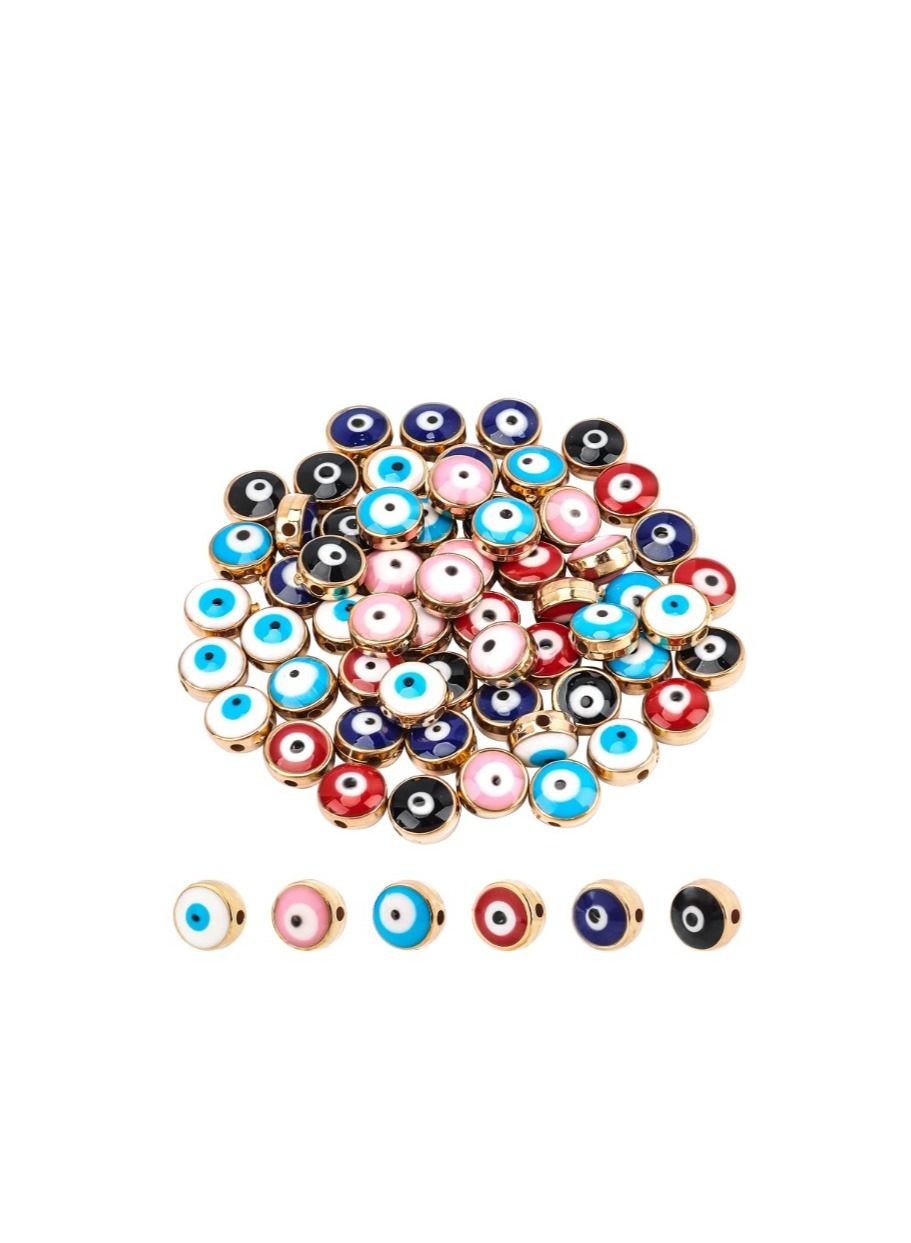 | nameOriginal | 60 Pcs Acrylic Evil Eye Beads, 8mm Flat Round Opaque Gold Plated Evil Eye Charms for DIY Jewelry Making 6 Assorted Colors |