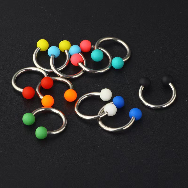| nameOriginal | Acrylic frosted lip ring horseshoe ring stainless steel C- bar piercing jewelry candy color rubber ball nose ring |