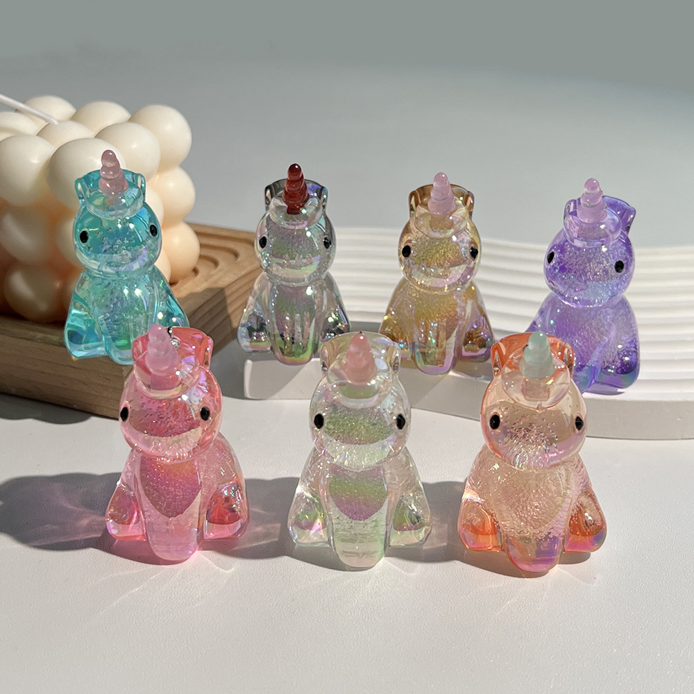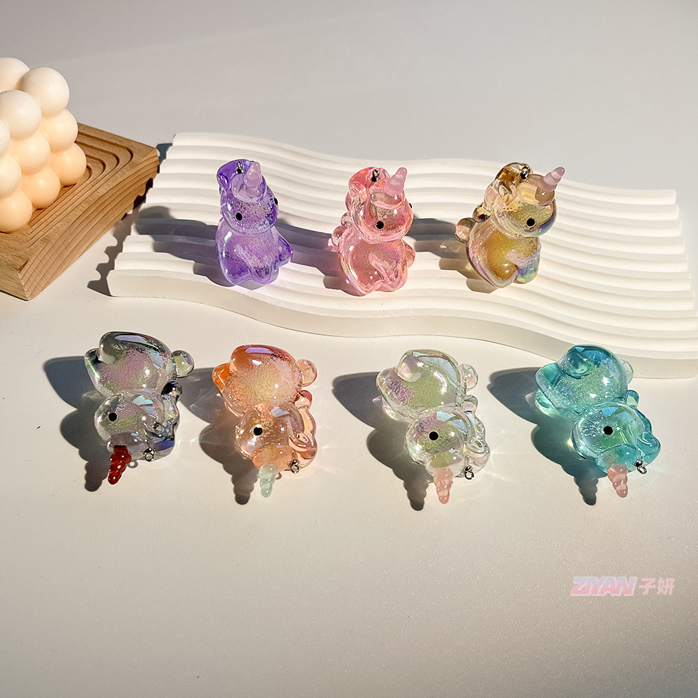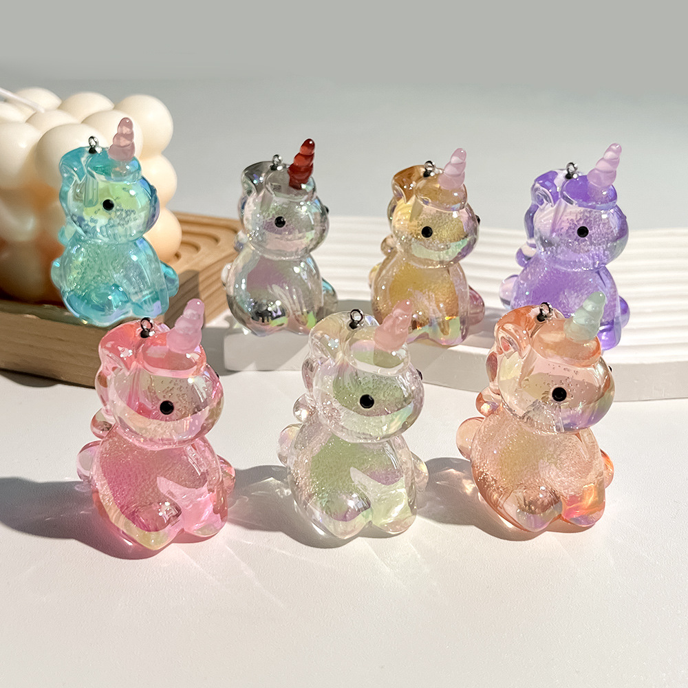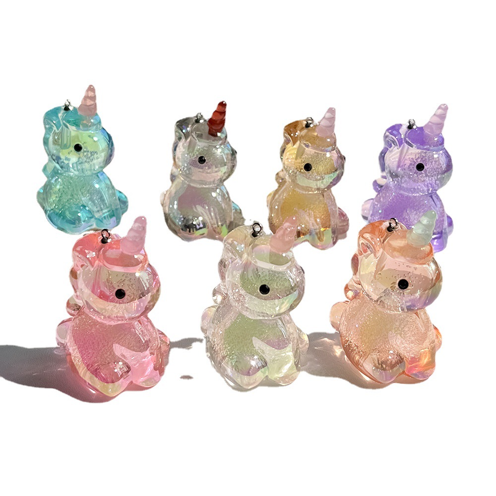Acrylic pendant uv plated bubble transparent colorful cute little unicorn keychain bag toy diy accessories