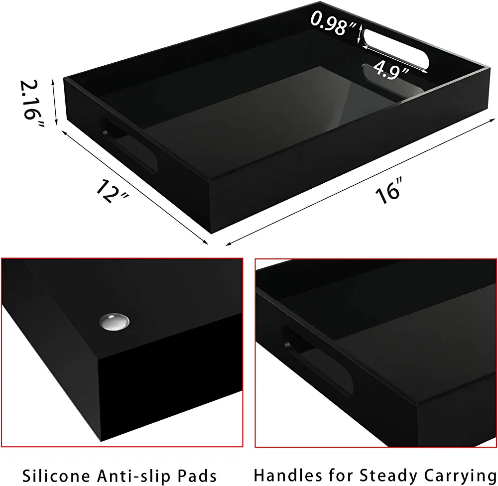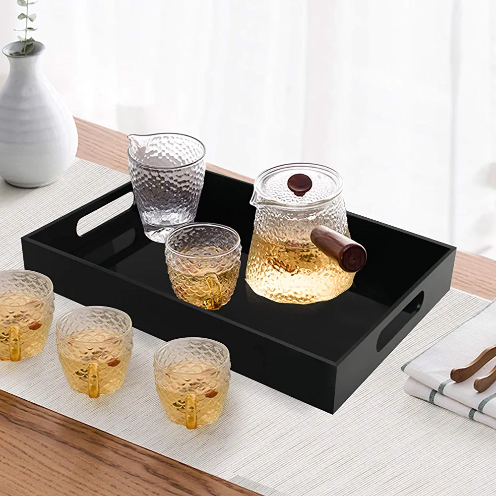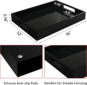 | nameOriginal | Tasybox Black Serving Tray, Acrylic Decorative Serving Trays with Handles for Kitchen Dining Room Table Ottoman Vanity Countertop 16" x 12" |