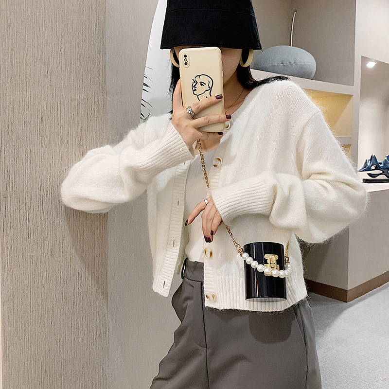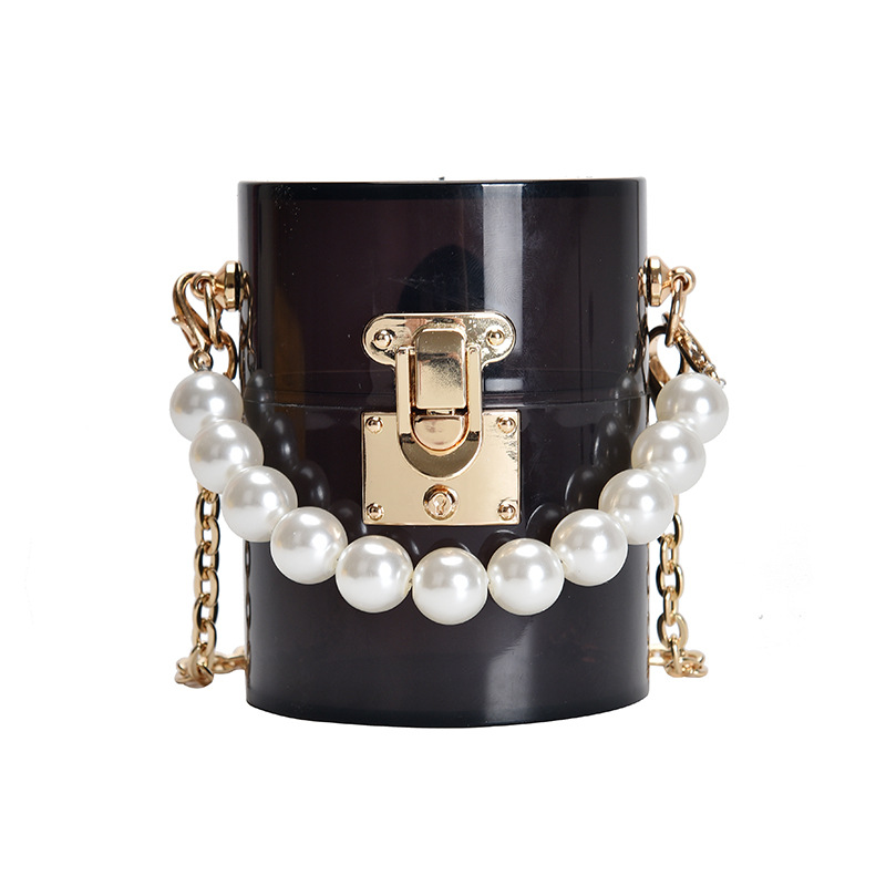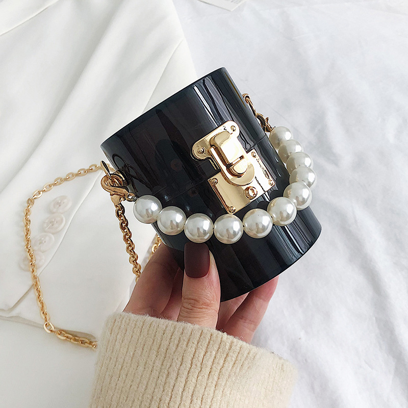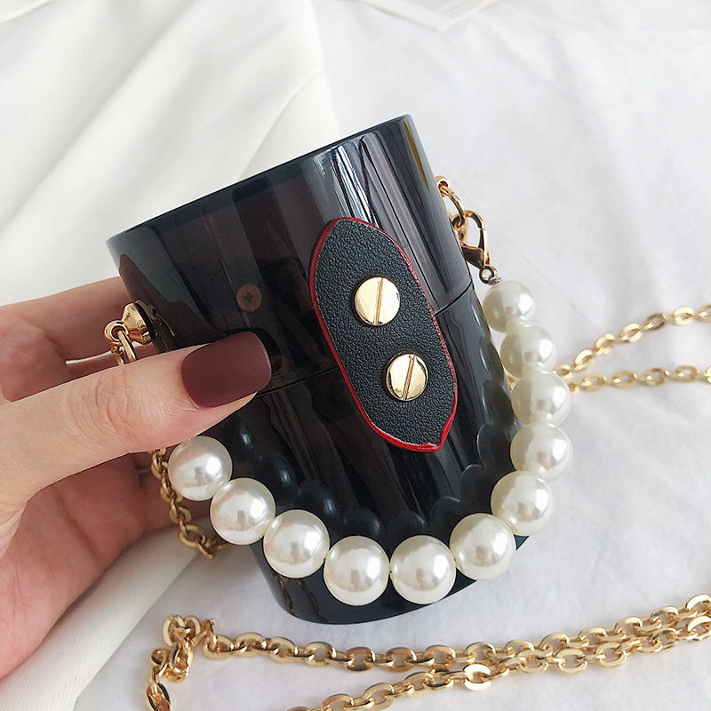 Acrylic Transparent Bucket Bag New Korean Style Fashionable Distinctive Chain Shoulder Crossbody Bag Mini Pearl Mouth Red Bag