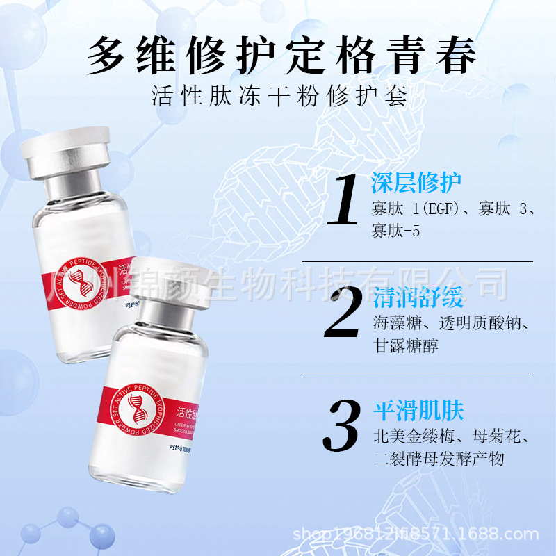 | nameOriginal | Active peptide freeze-dried powder repair hydrating kit Active peptide oligopeptide facial kit Beauty salon freeze-dried powder kit |