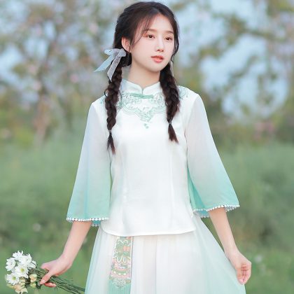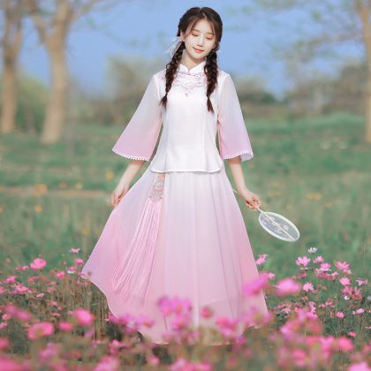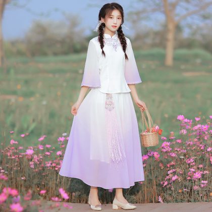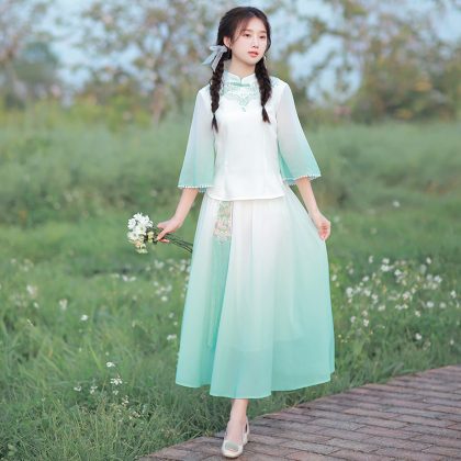 Activity Chinese Style Tea Suit Hanfu Xianyi Tang Suit Cheongsam National Fashion Women’s New Gradient Color