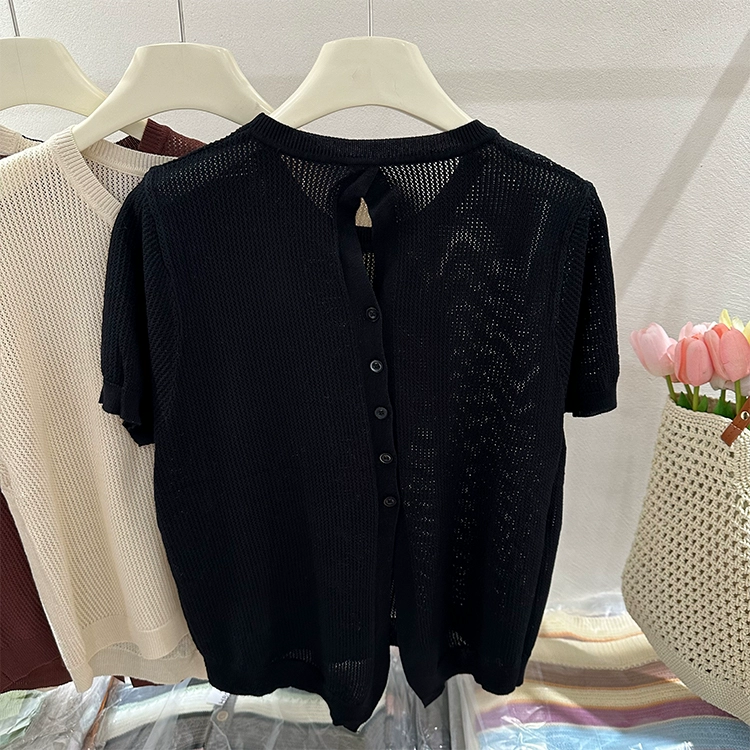 | nameOriginal | Actual shot of Western style short sleeves with hollow buttons on the back and slits |