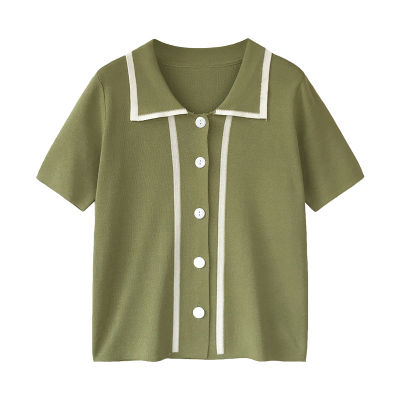 | nameOriginal | Acura Green Ice Silk Knitted Sweater Women's 2023 Summer New Loose Short-sleeved Polo Shirt Matcha Green T-shirt Top |