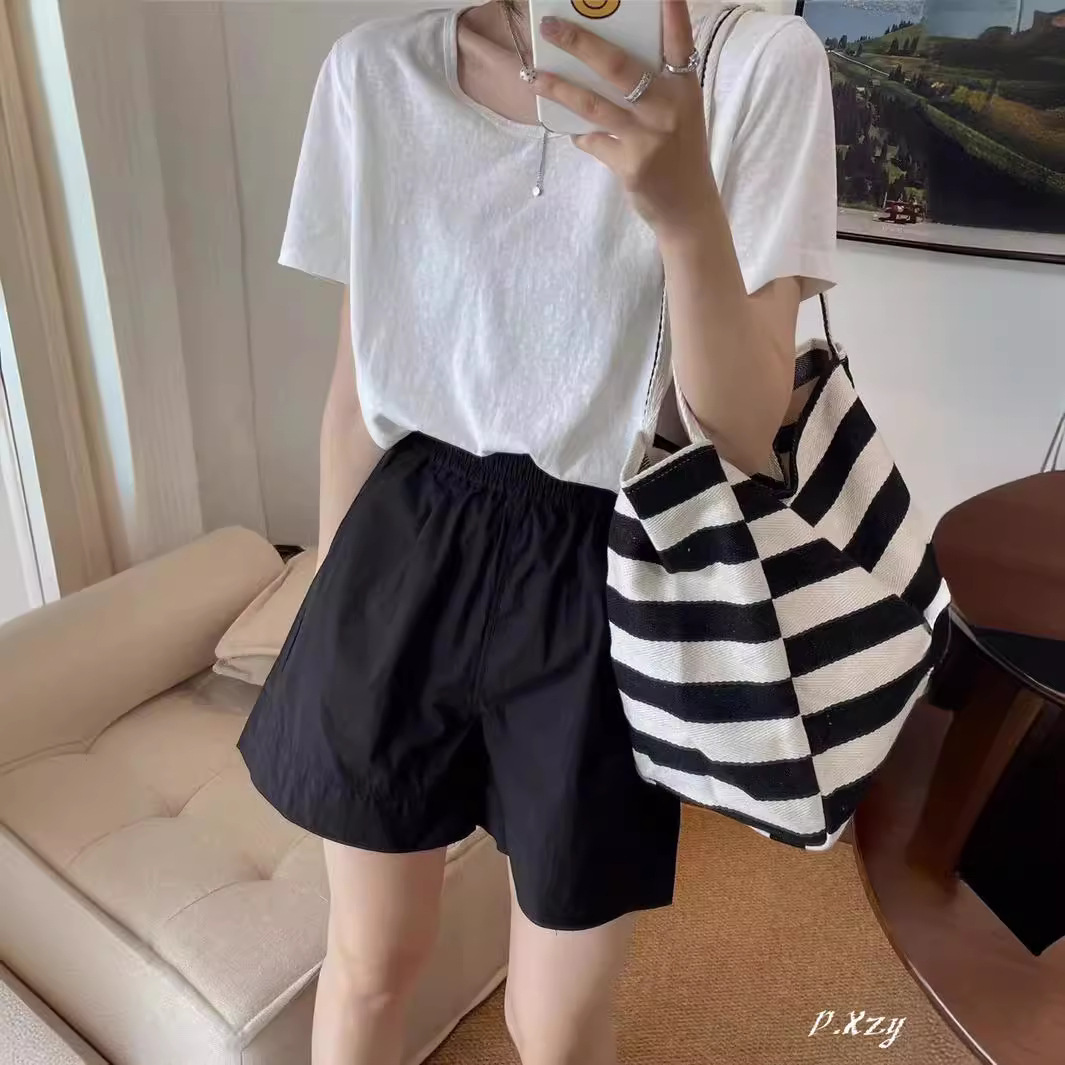 AD 2024 Summer New Women's Shorts Korean Style Casual Loose Waist Quick-drying Solid Color Thin Pants Women's Trendy