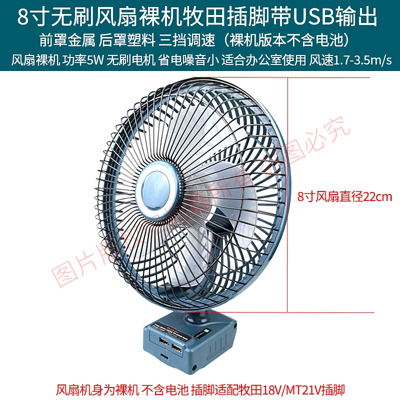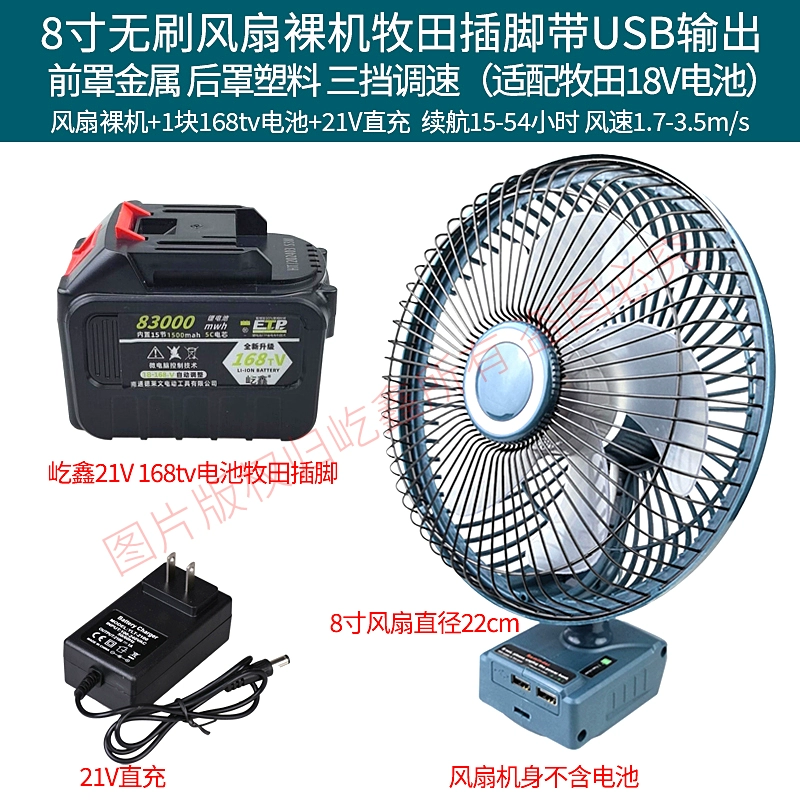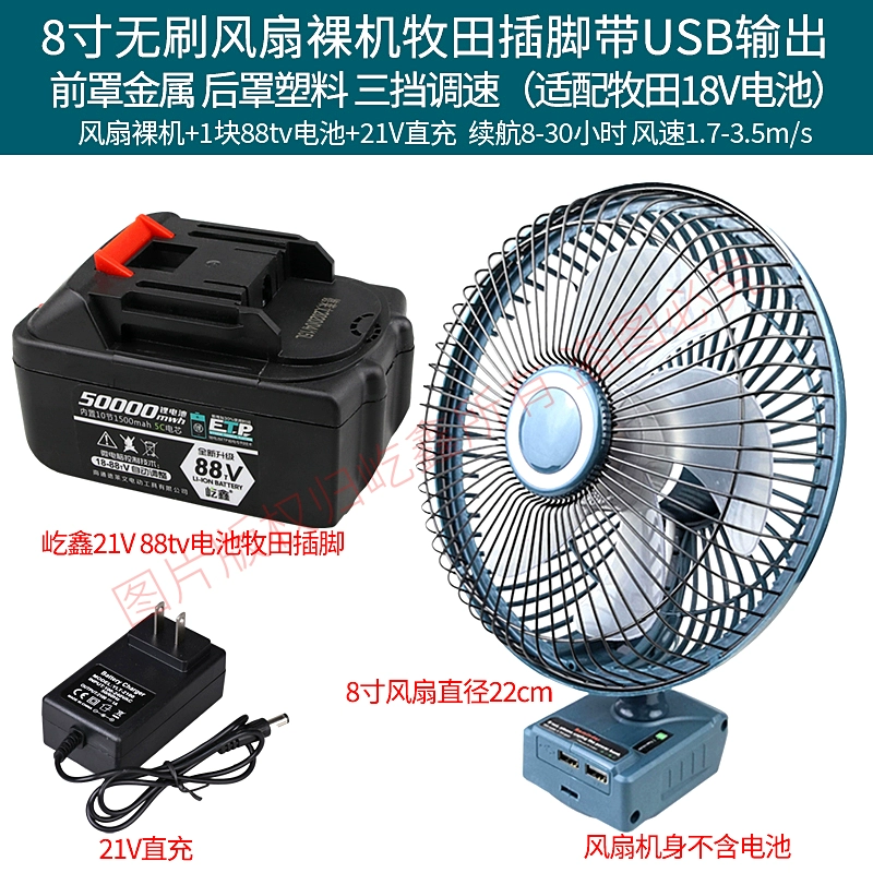 | nameOriginal | Adapted to Makita pin MT socket lithium battery brushless fan wireless rechargeable fan 3-speed speed adjustment 8 inches long battery life |