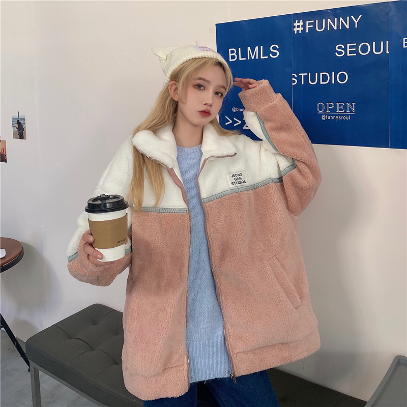 | nameOriginal | Add velvet padded color matching plush zipper coat women's autumn and winter loose warm collar cross-border Women's wholesale foreign trade |