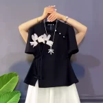 | nameOriginal | Added fat stand collar tassel plate button color block flower skirt |