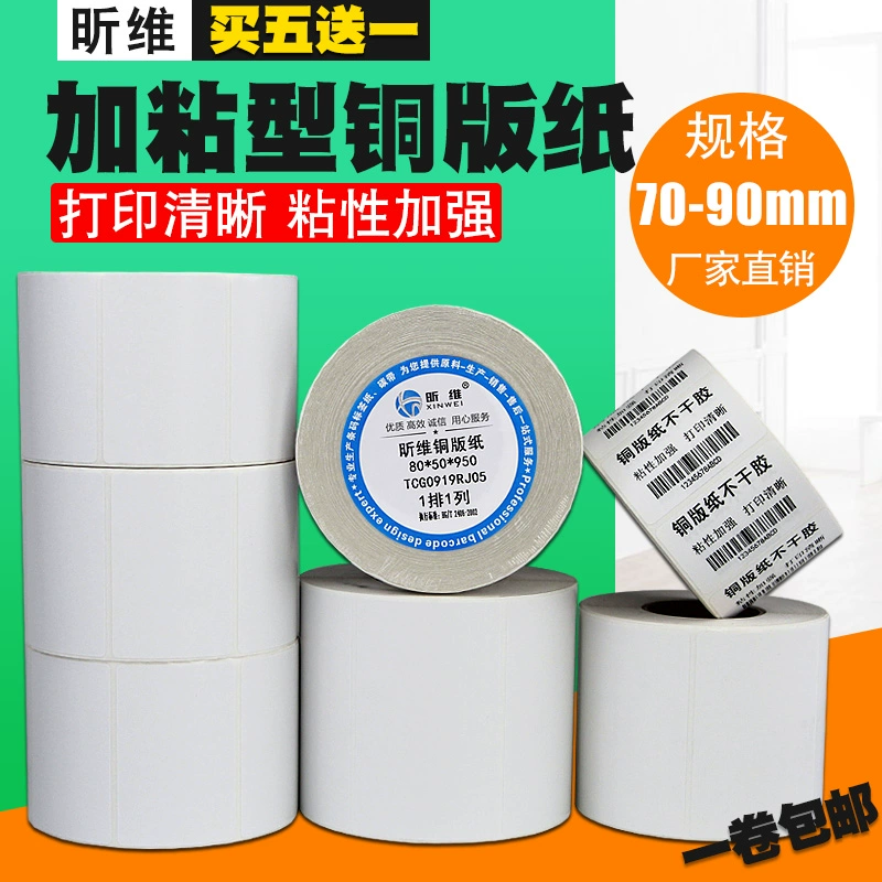 | nameOriginal | Adhesive type copperplate label paper self-adhesive 70-90*30 40 50 25 60 80×100 carbon ribbon barcode printer copper plate barcode outer box winter weather cold sticker easy to tear with K line |