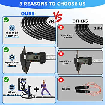 | descriptionOriginal | 【What You Will Receive】Not only will you receive a skipping rope and a packing box, we also give away a resistance band, you can do stretching and strength training after jump rope, the two sports are seamlessly connected. Whether it is for personal use or as a gift to family and friends, it is a good choice. |