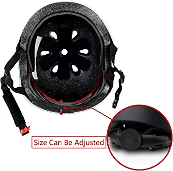 The helmet is adjustable to fit head circumferences between 18.89 inches and 21.26 inches (48~54cm) with stretchy straps. It features multilayered security protection, including an impact-resistant ABS shell, thickened EPS liner, and soft breathable sponge protection. The lining is removable and washable, ensuring a comfortable and hygienic fit.