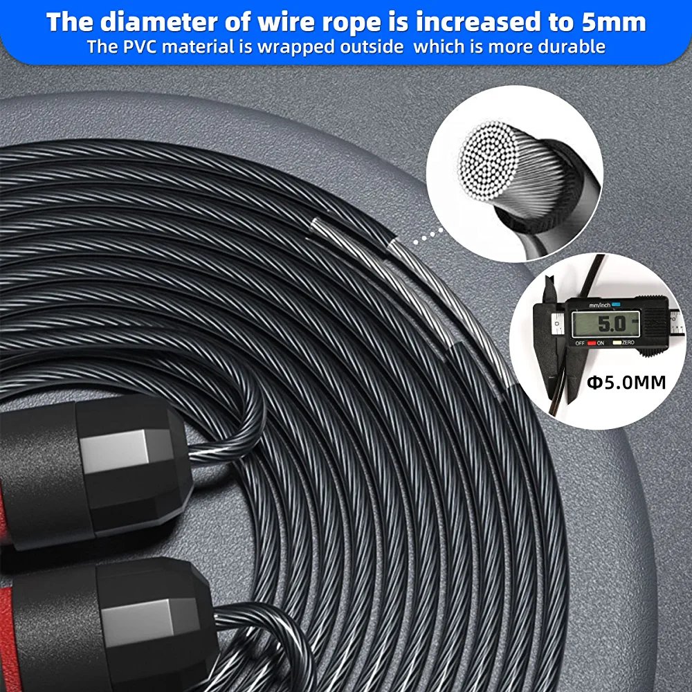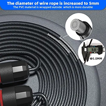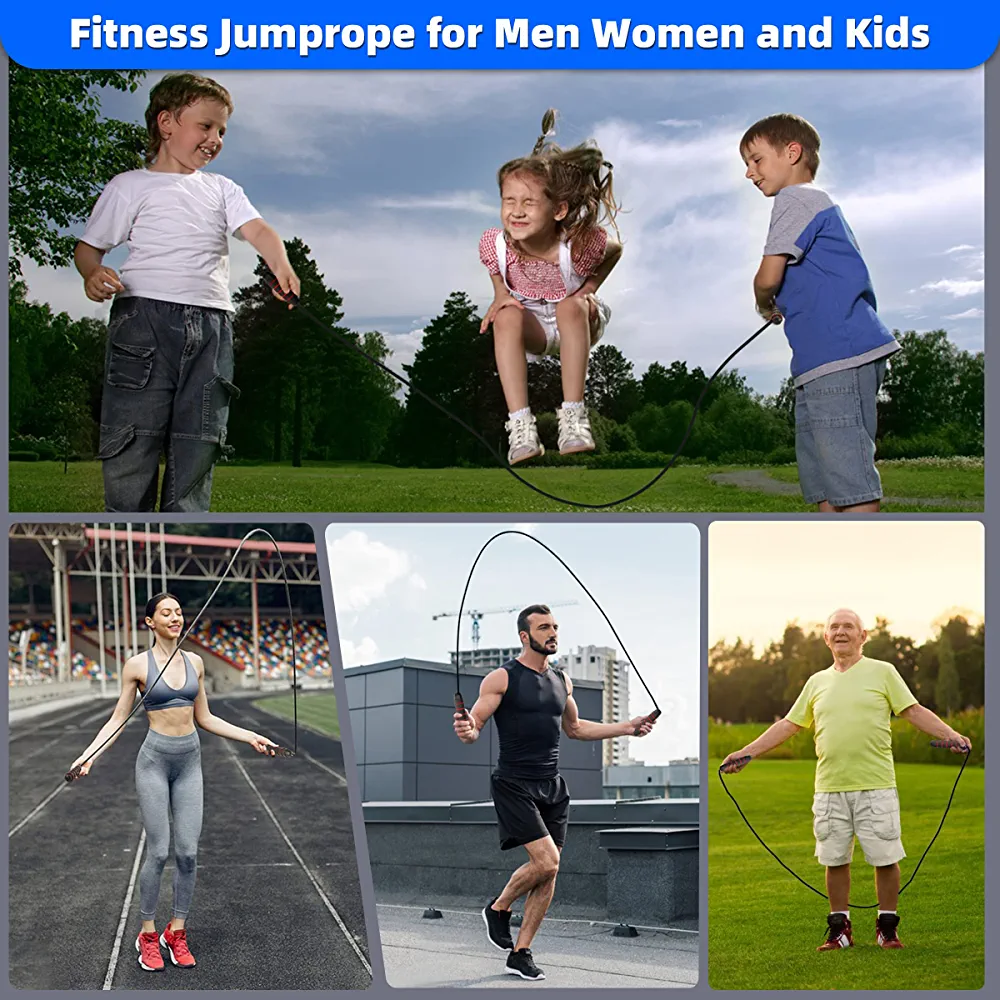 【9.8 Feet Rope Length and Adjustable】Our jump rope is different from most skipping ropes on the market and has been lengthened to 9.8 feet. Jump rope for women or jump rope for kids or jump rope for men can be cut to be how long you want. This jump rope as a kind of exercise equipment, can help kids men women for fitness, exercise. This cuerda para saltar ejercicio is made of strong PVC material wrapped with multiple strands of steel wire inside, which is strong, wear-resistant and durable.