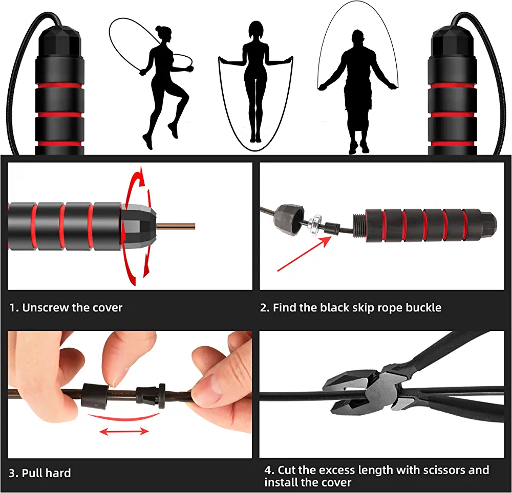 【Warm Tips】Although our skipping rope fitness equipment can adjust the length, when you determine the length of the rope skipping according to your needs, the excess rope needs to be cut off, otherwise It will not supports fast jumps and won't protecting you from any potential tangles. |