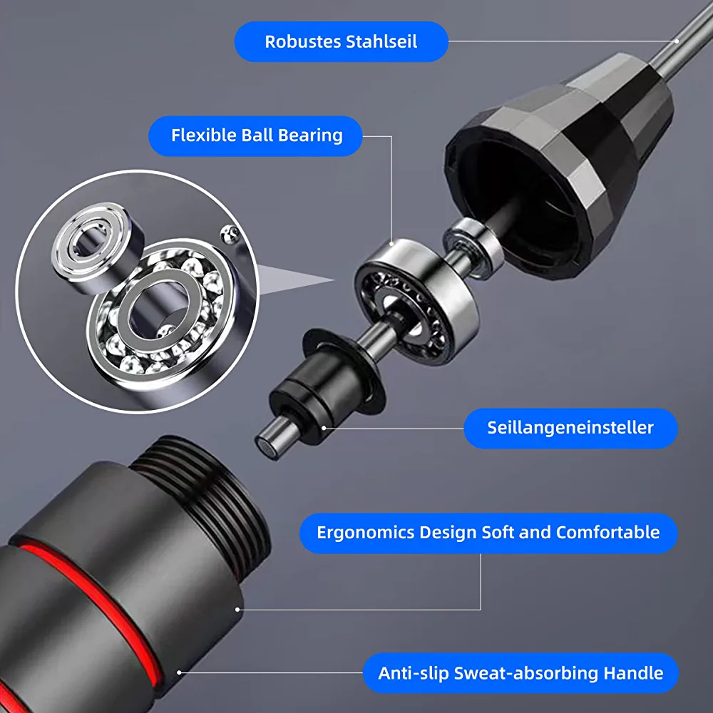 【Speed Rope and No Twisting】Our jump rope for men women has added a ball bearing system, so that it can avoid twisting and entanglement, ensuring stable and easy rotation of the jumprope, the fluency of the jump ropes brings you fitness while still bring a better sports experience.Remember, the excess rope needs to be cut off by referring to the instructions in the second main picture, otherwise, it is easy to get tangled and knotted when skipping.