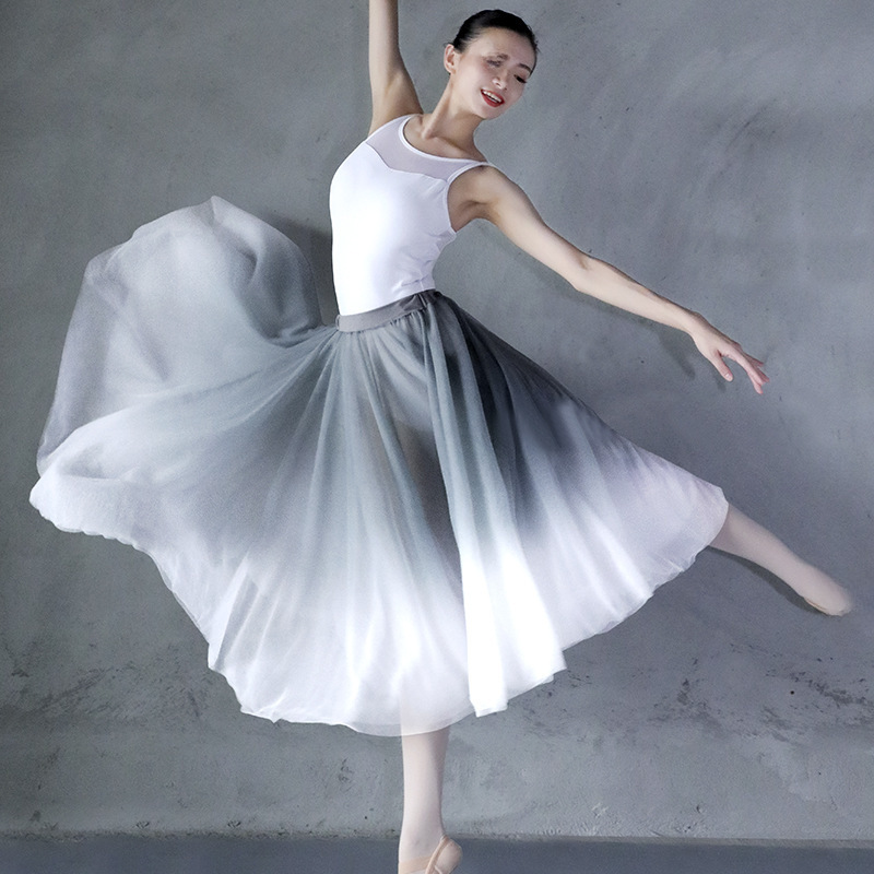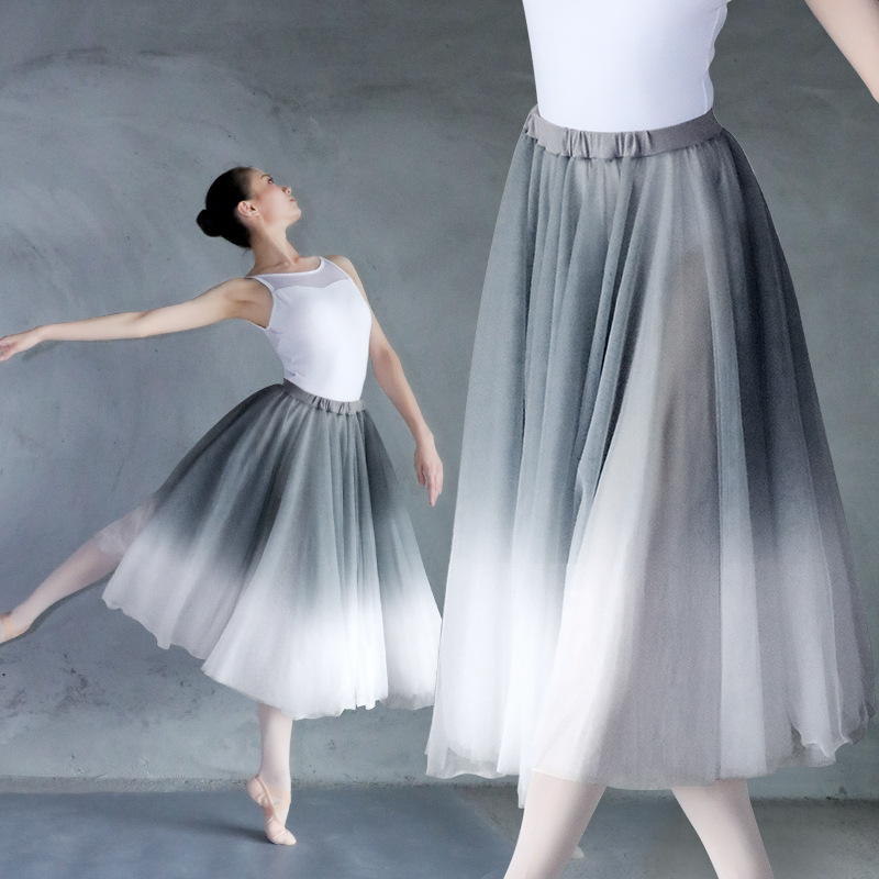 Adult Dance Practice Dress Half-length Vallen Skirt Gradient Soft Mesh Elaptic Ballet One-piece Skirt Pontoon Skirt Midi Skirt