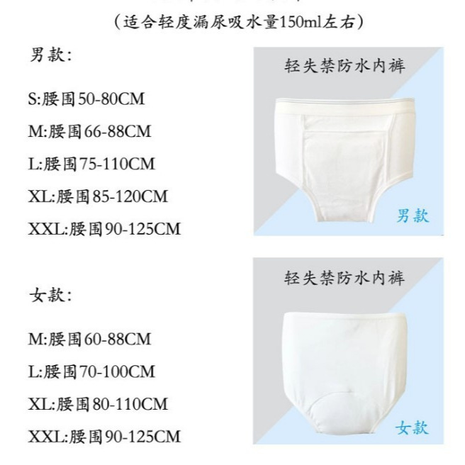 Adult Elderly Incontinence Washable Diapers Repeated Cleaning Leak-Proof Anxin Pants Waterproof Cotton Underwear for Men and Women Mild Urine