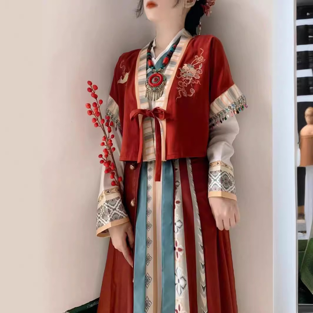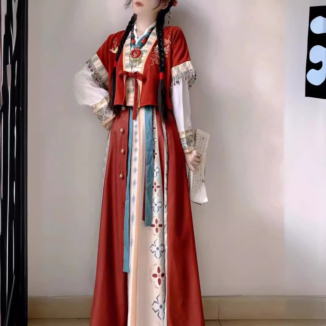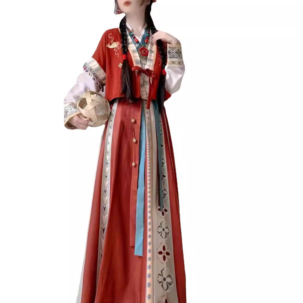 Adult Hanfu Daily Tang Style Han Yuan Su Female Improved Chinese Ancient Style Tang Yizi Hand-in-Collar Waist Skirt for Photographing