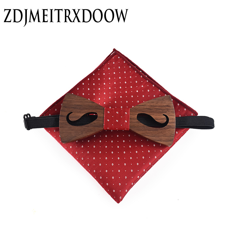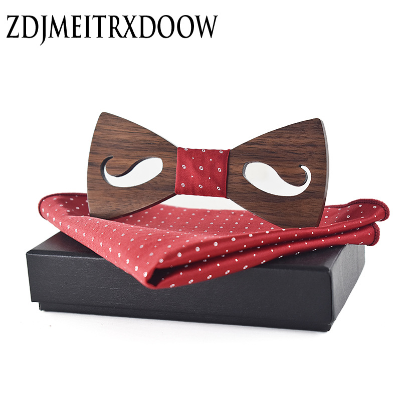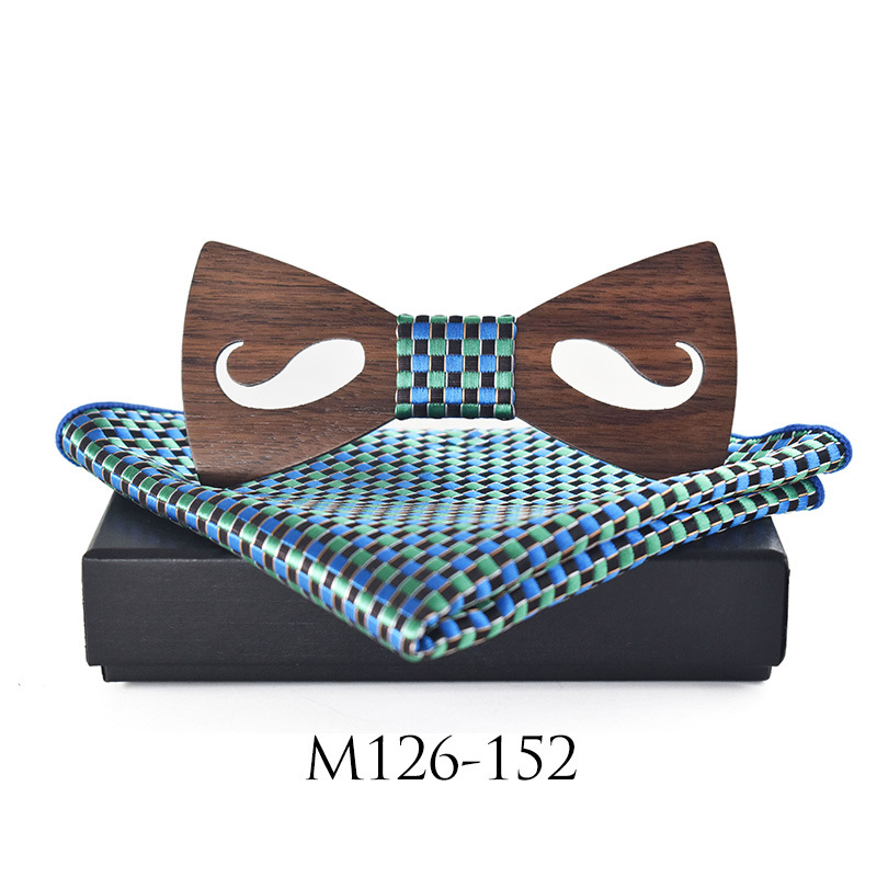 | nameOriginal | Adult Hollow Carved Beard Party Wood Bow Tie Set Polyester Square Scarf Bow Tie Business Set |