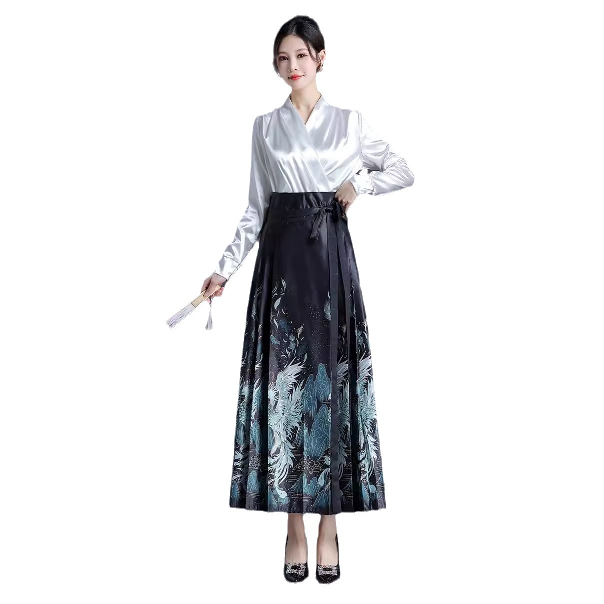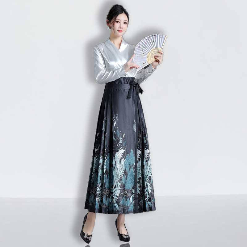 | nameOriginal | Adult maxi skirt Hanfu women's wholesale mid-length skirt long skirt pleated skirt black high waist A- line skirt |