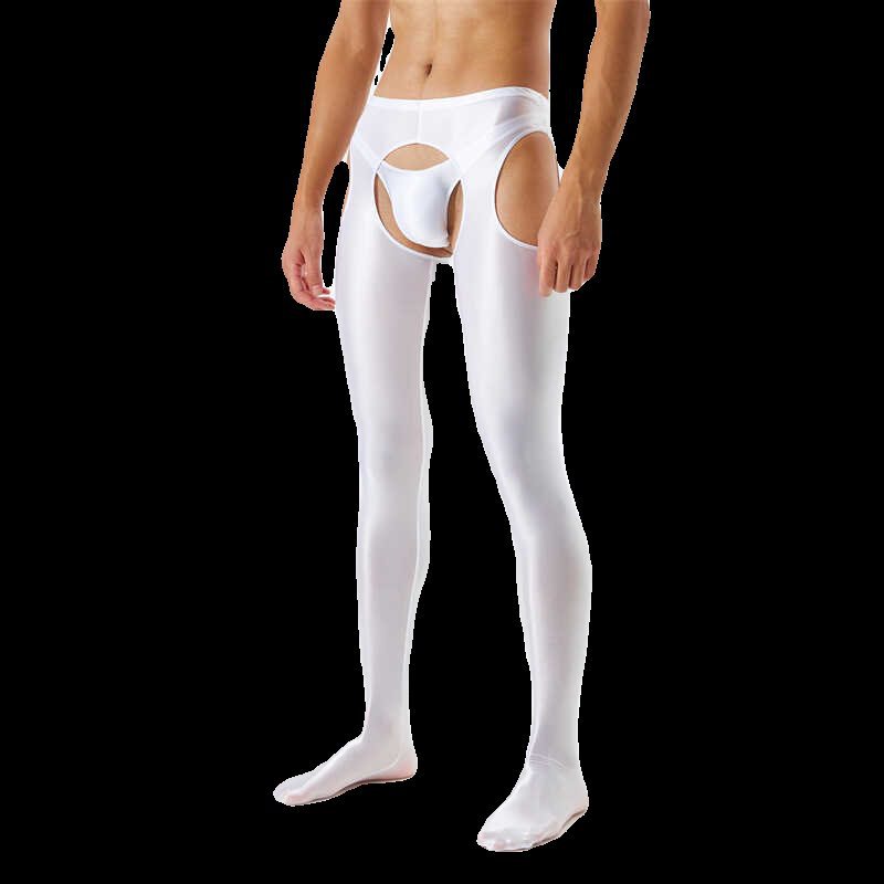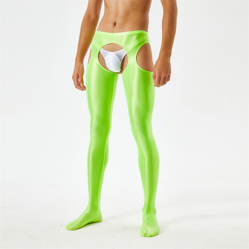 Adult Sexy Youth Sexy Tight Pants Men's Low Waist Hollow Out Bottoming Pants Open Hip Shiny Ice Silk Fashion
