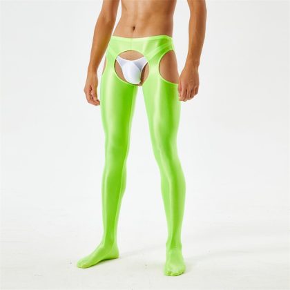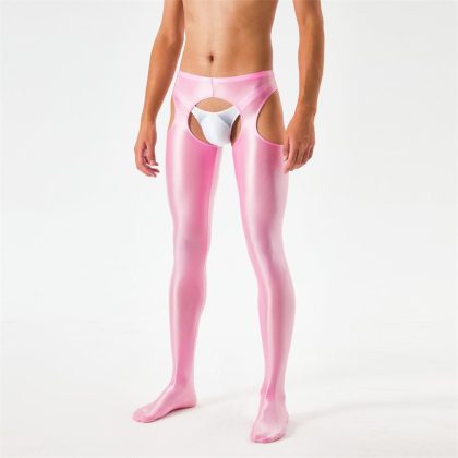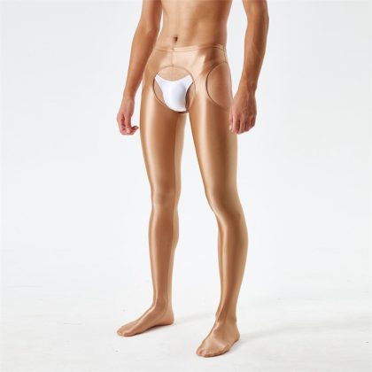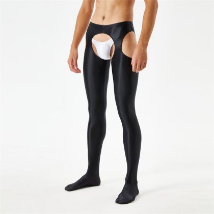 Adult Sexy Youth Sexy Tight Pants Men’s Low Waist Hollow Out Bottoming Pants Open Hip Shiny Ice Silk Fashion