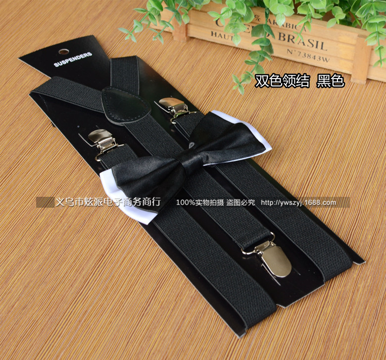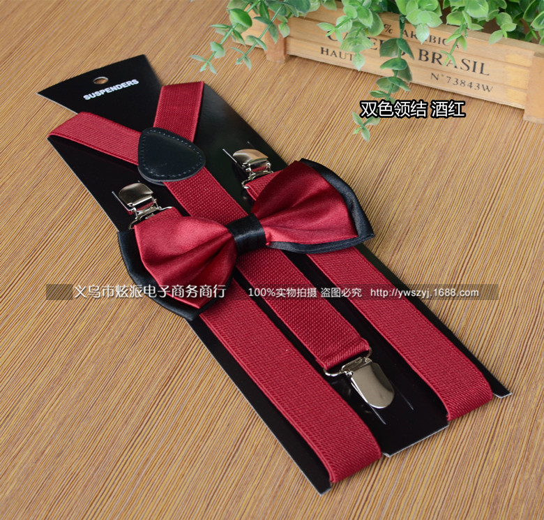 | nameOriginal | Adult Two-color Bow Tie + Strap Set for Men and Women Solid Color 3-clip All-match Suspenders Shirt Accessories |