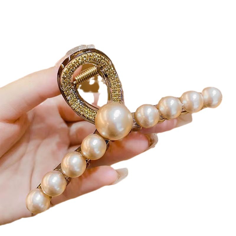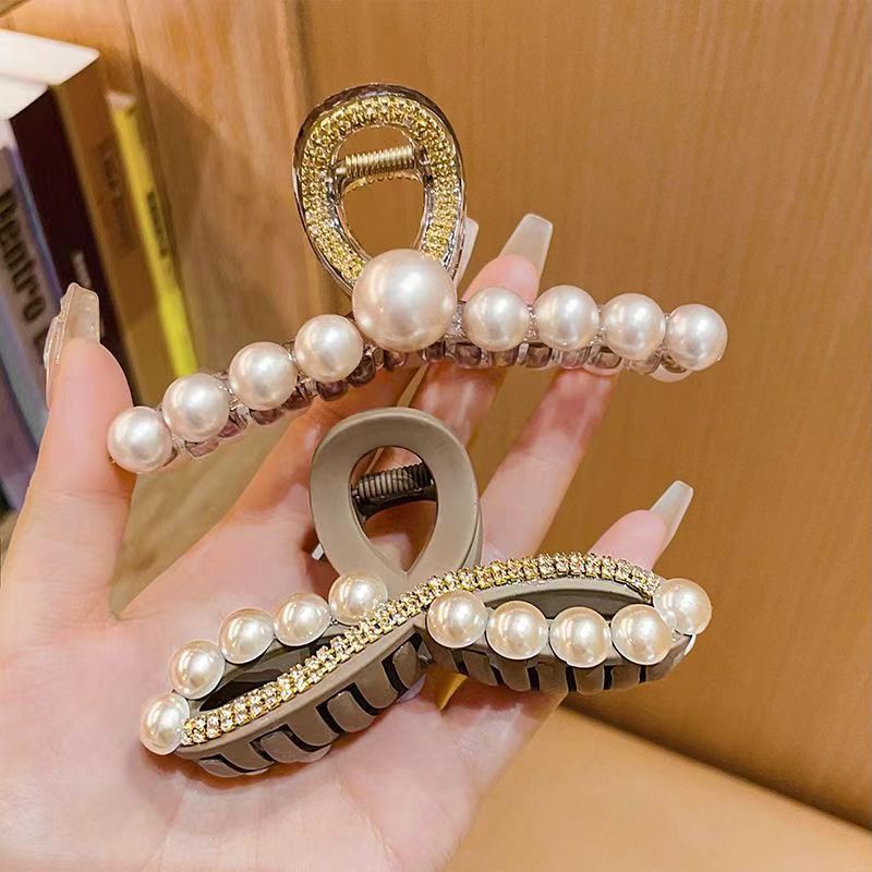 Advanced Rhinestone Grab Clip Women's Back Head Shark Clip Large Elegant Cyber Celebrity Hairpin Pearl Hairpin Clip Headwear
