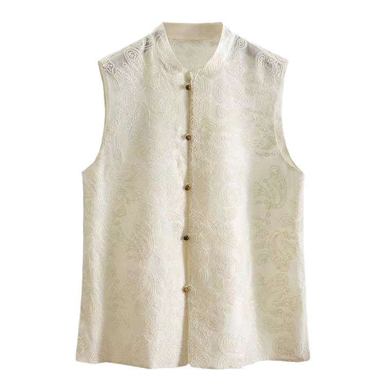Advanced Sense New Chinese Vest Women’s Summer Thin Heavy Industry Guofeng Embroidery Half-high Collar Stacked Vintage Clothes