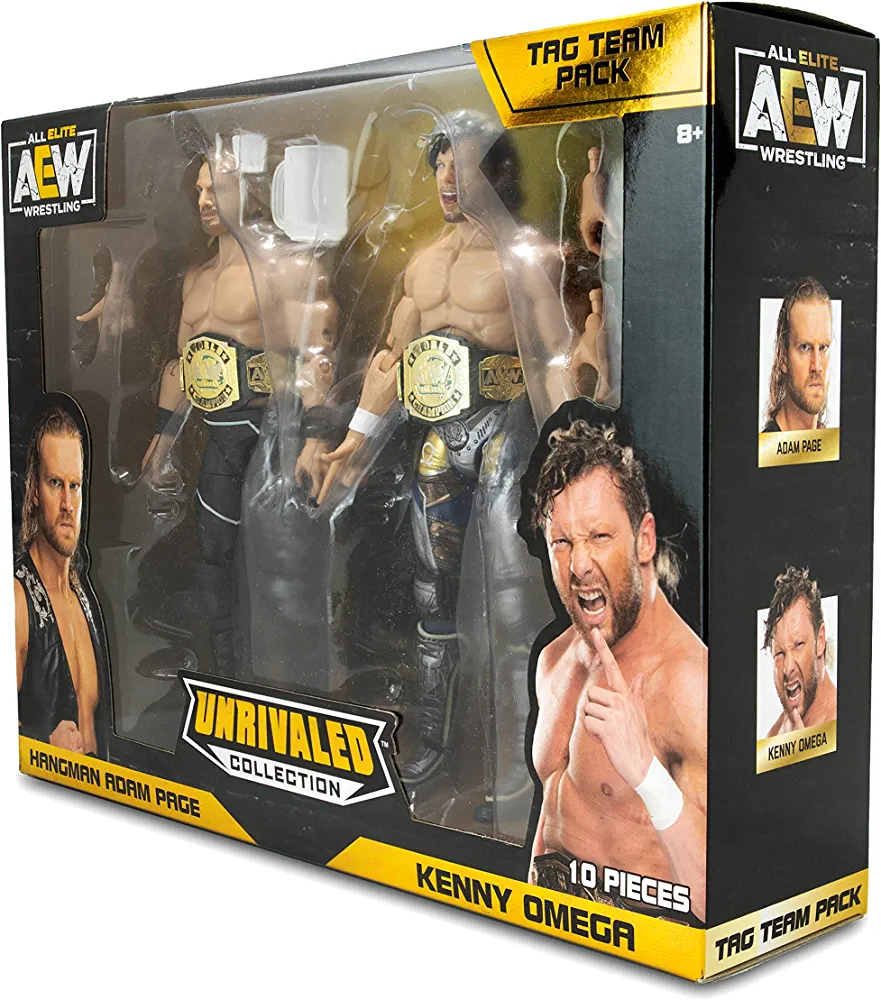| nameOriginal | All Elite Wrestling AEW Unrivaled Collection Tag Team Pack – Kenny Omega and Hangman Adam Page Action Figures, Plus Accessories – Amazon Exclusive |