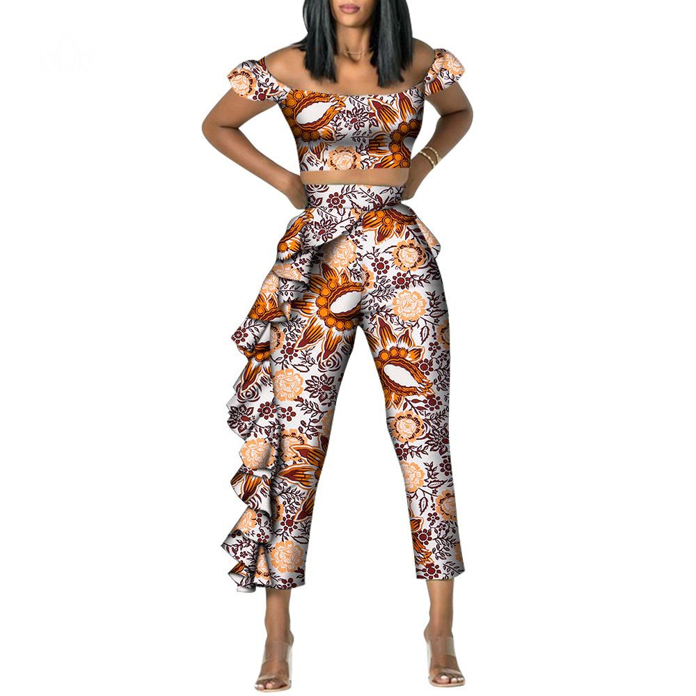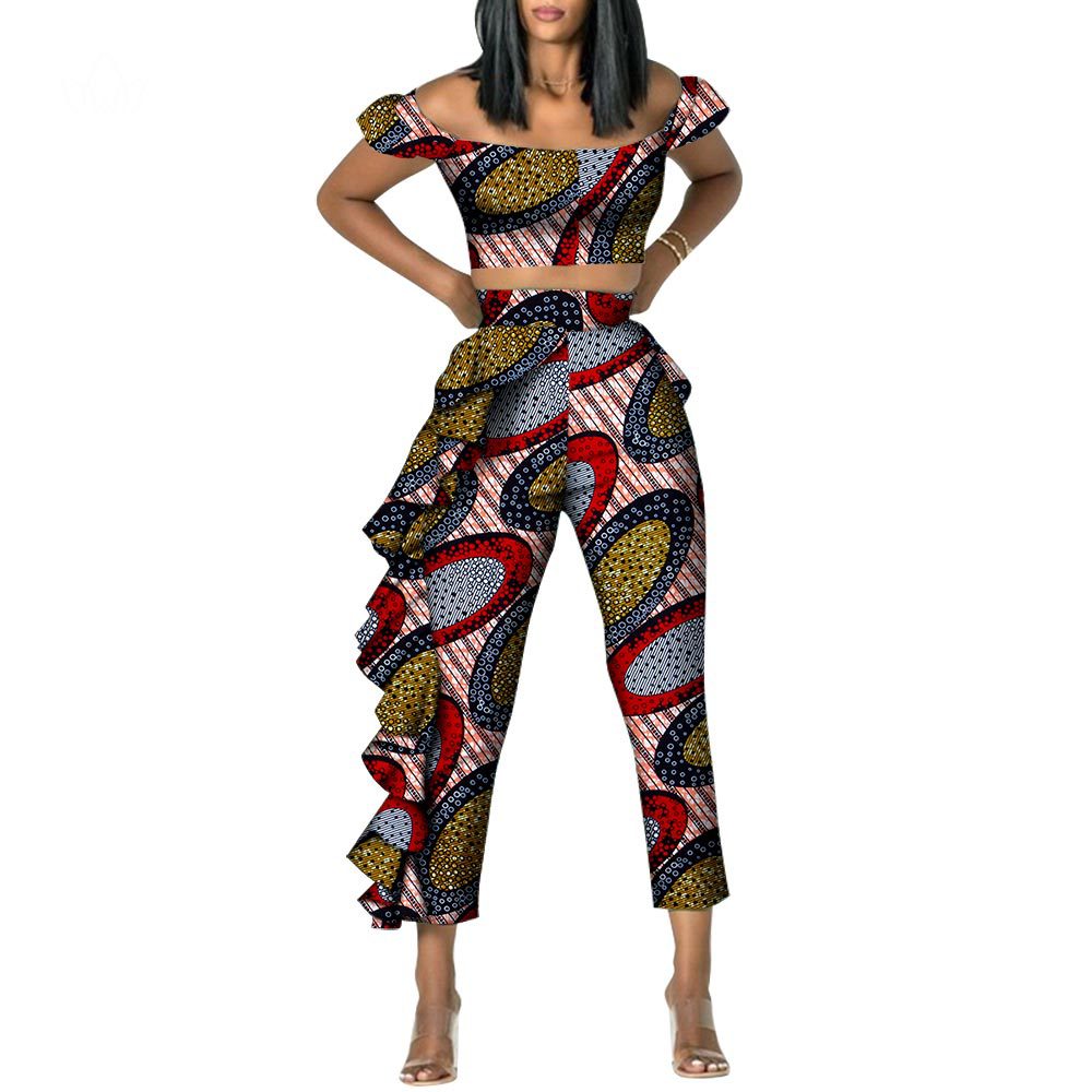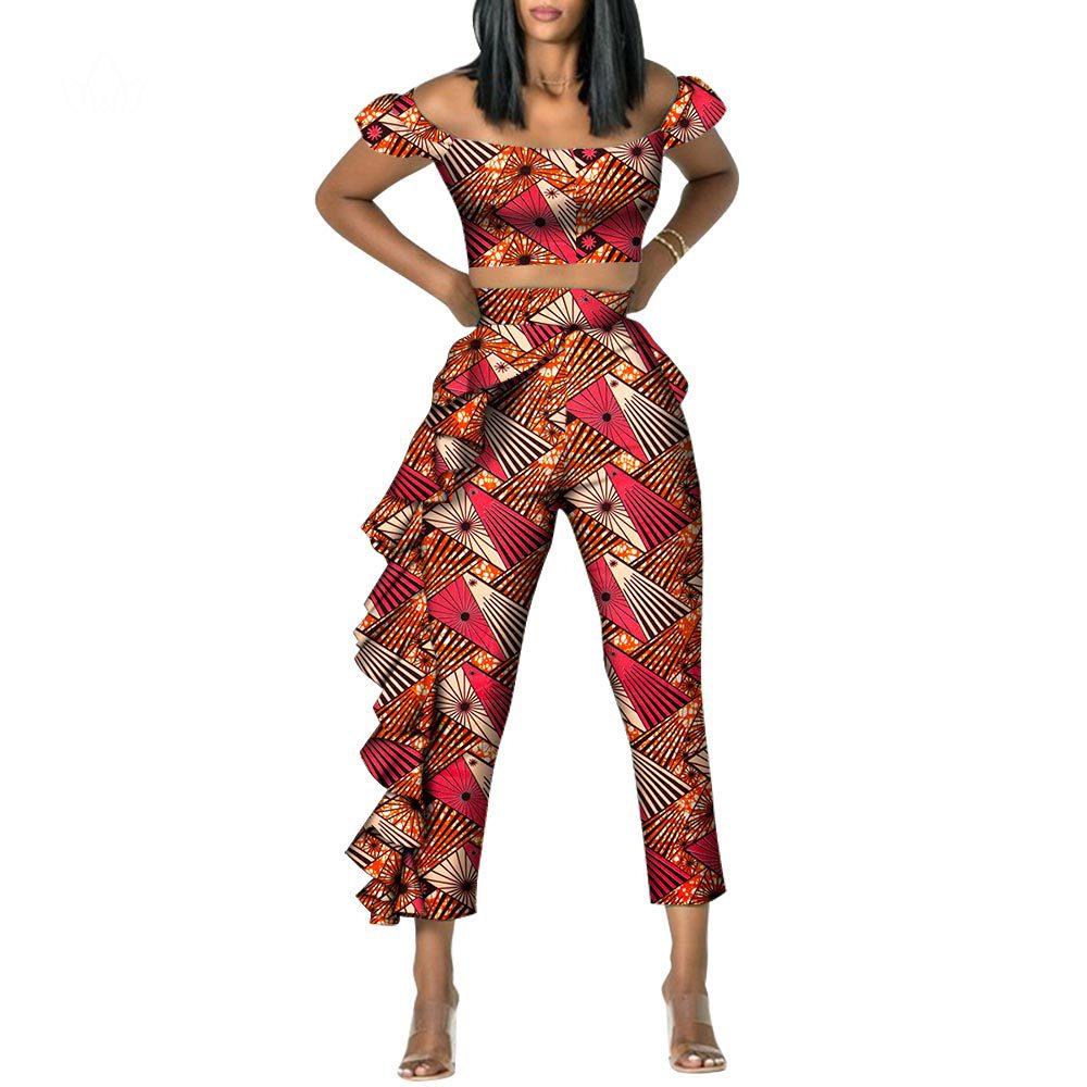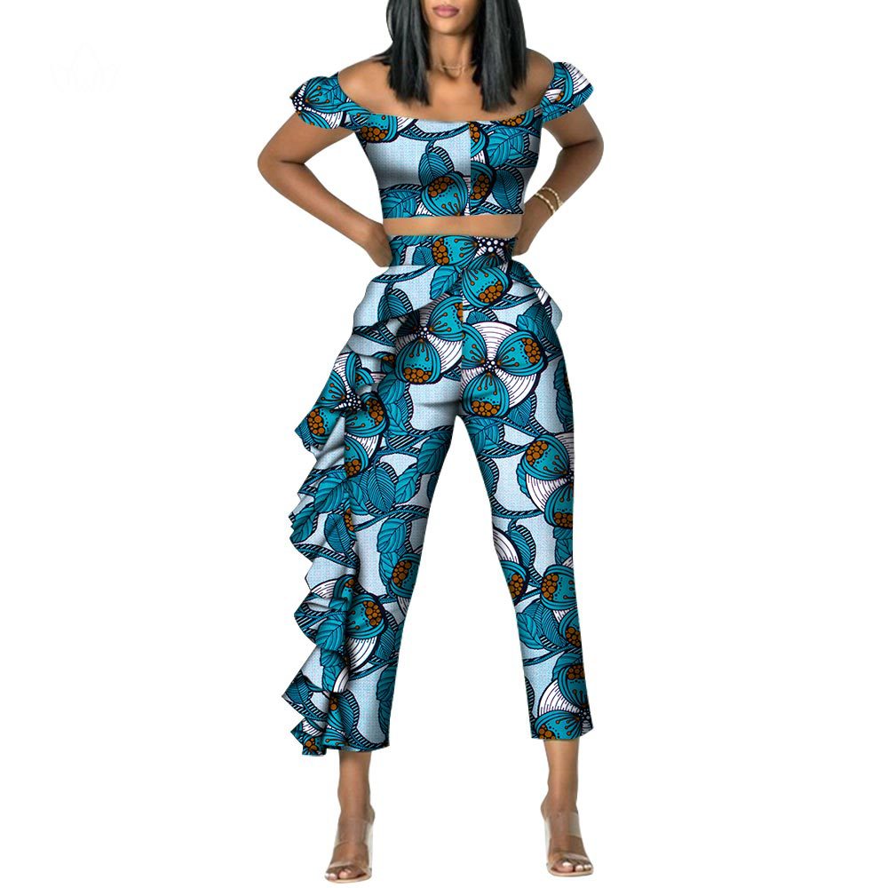 | nameOriginal | African Ethnic Wax Cloth Women's Straight Collar Top Pants Suit Cotton Ankara African Ethnic Style Suit |