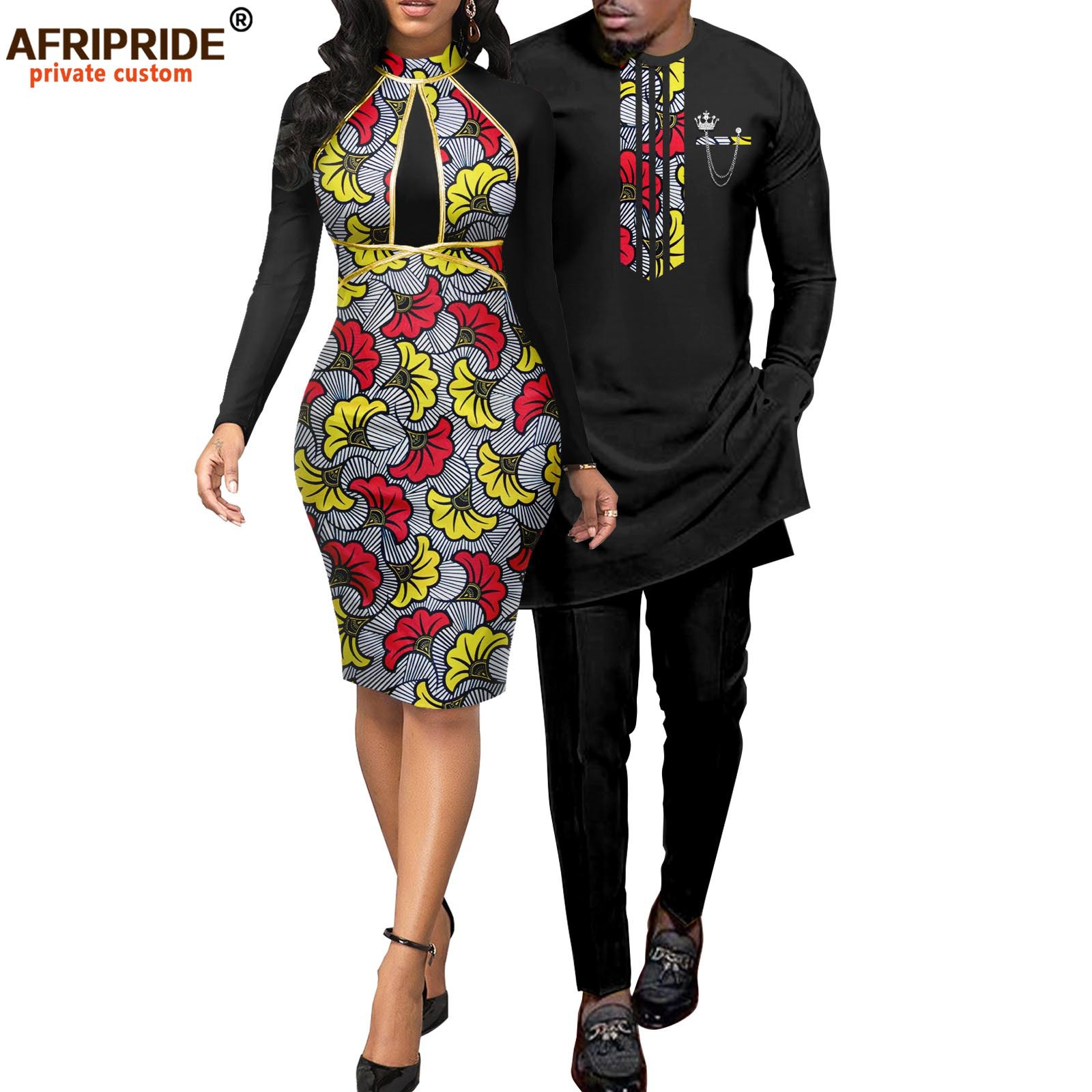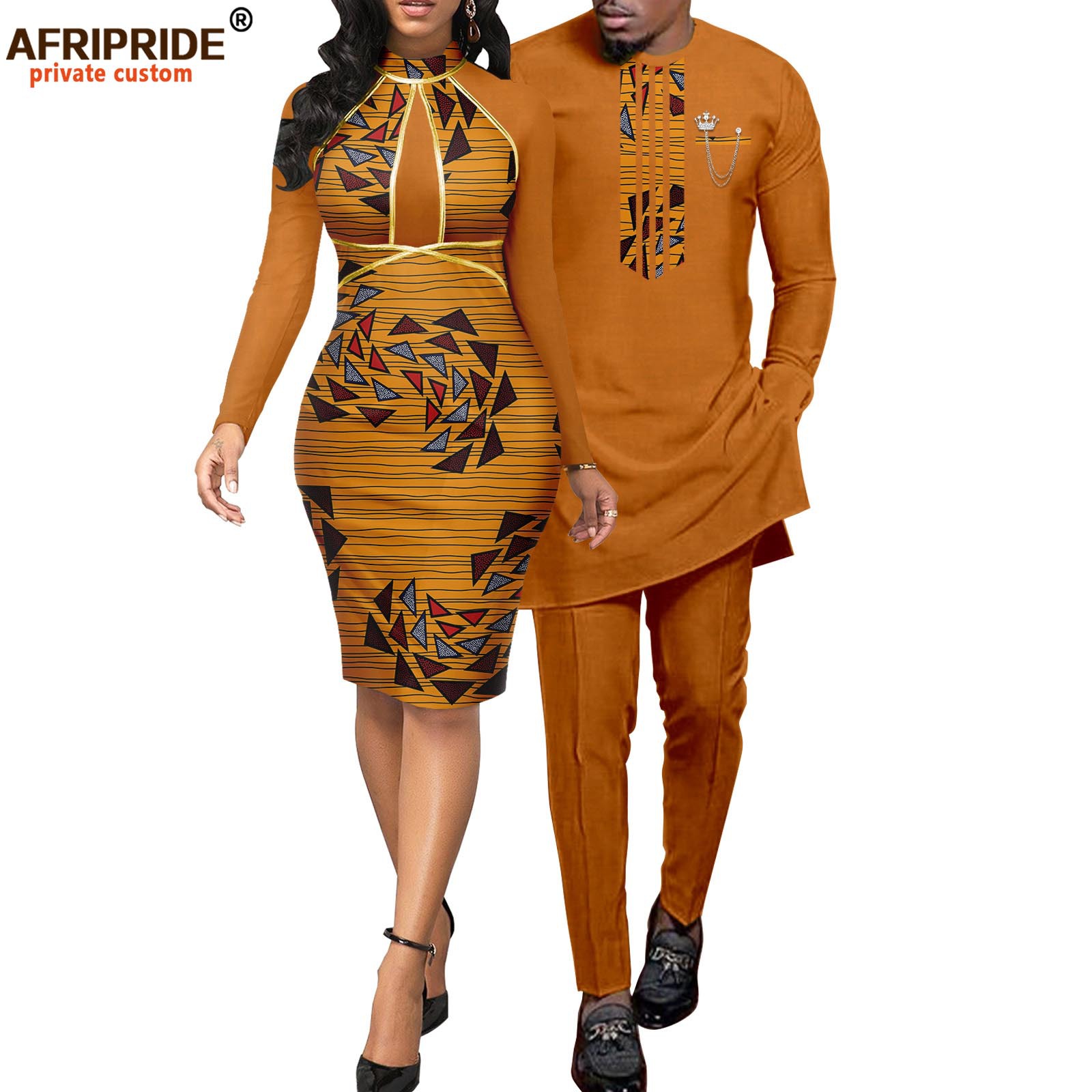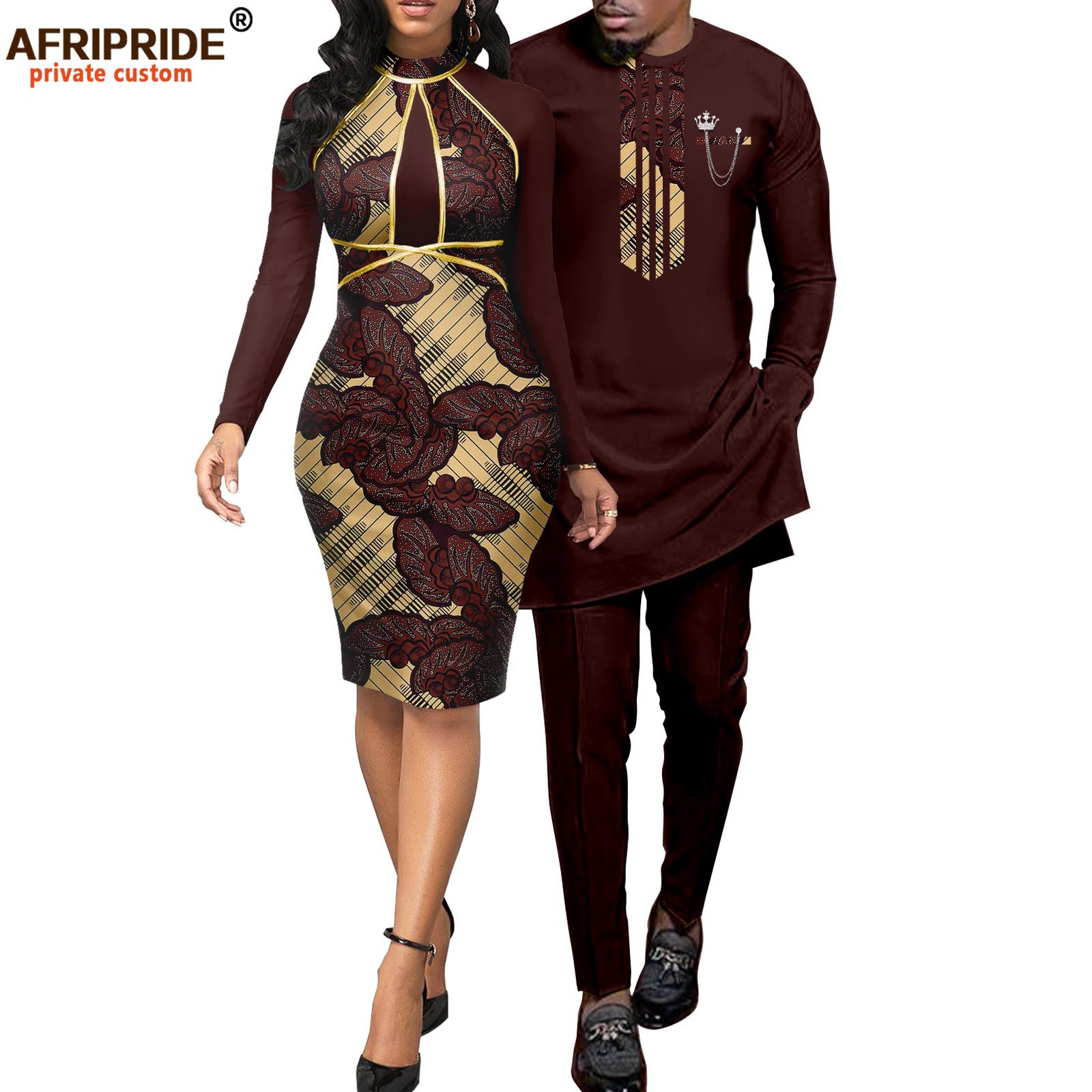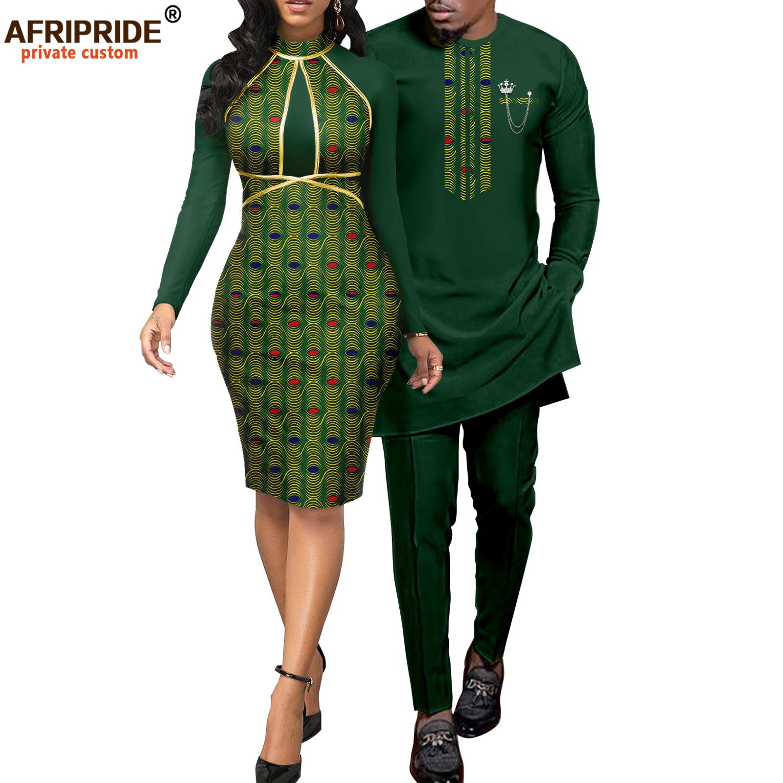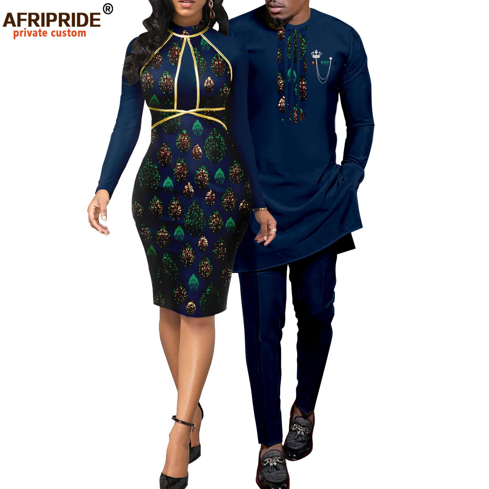 African print batik couple suit women dress + men suit AFRIPRIDE 2116055