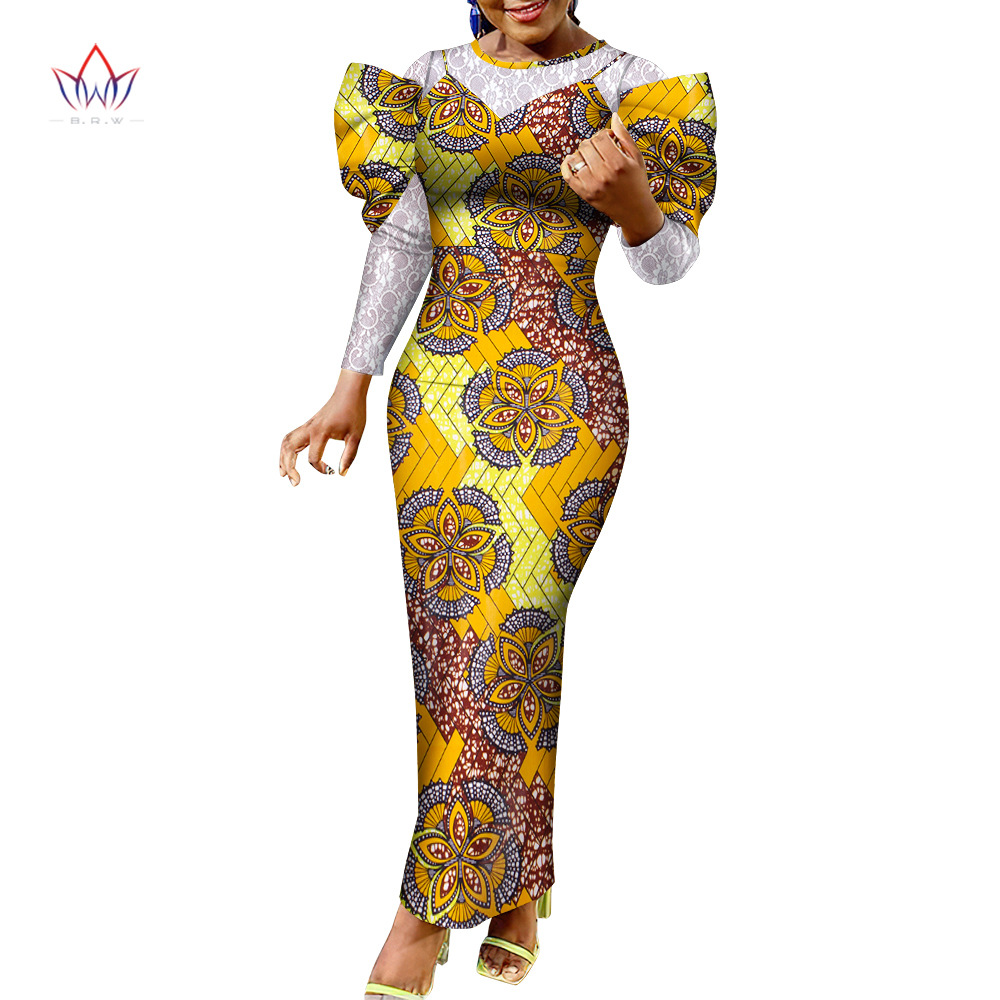 African print batik dress cotton lace stitching elegant wedding party clothing Amazon source
