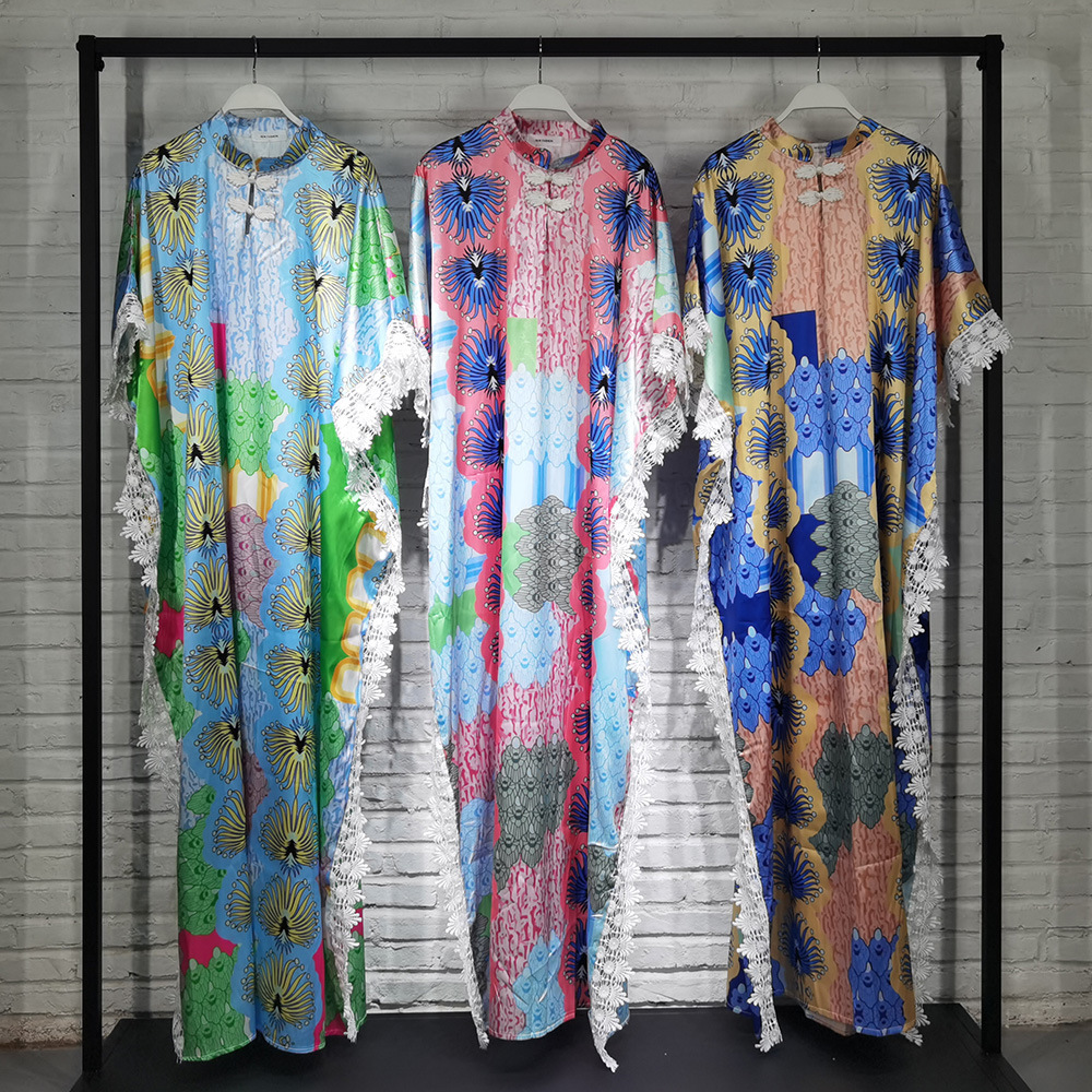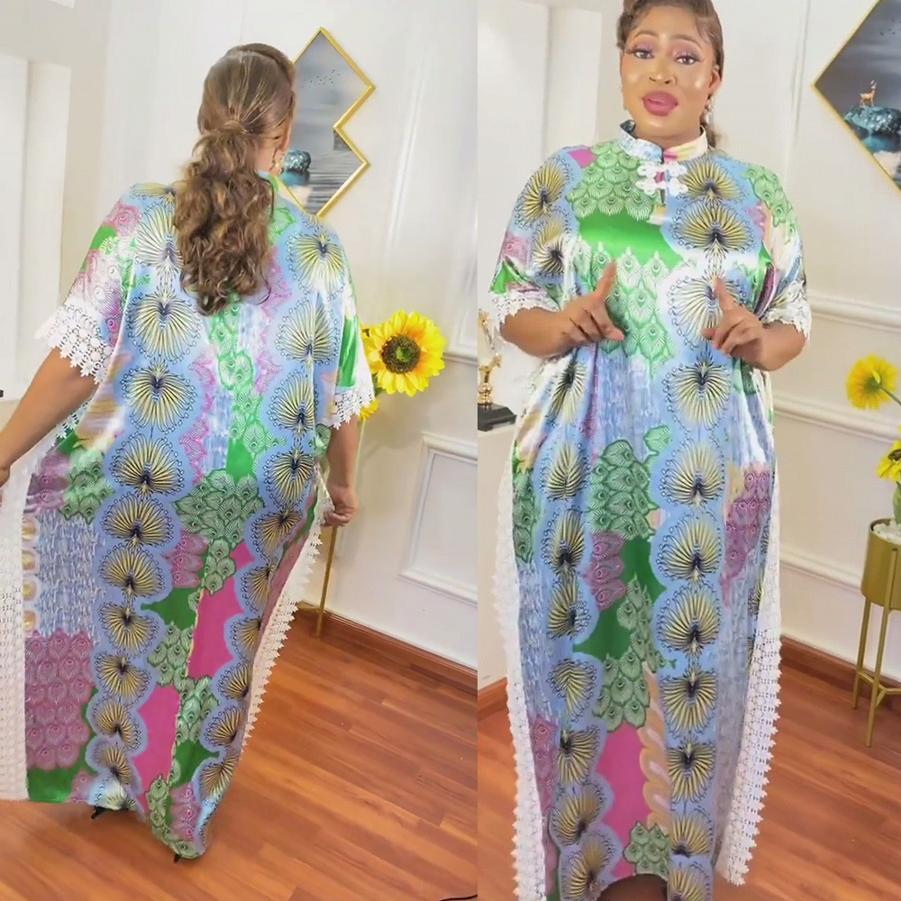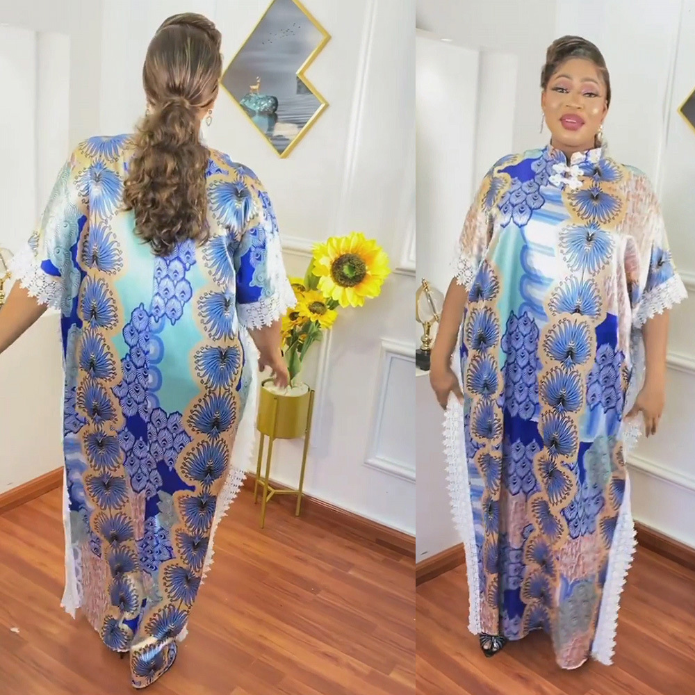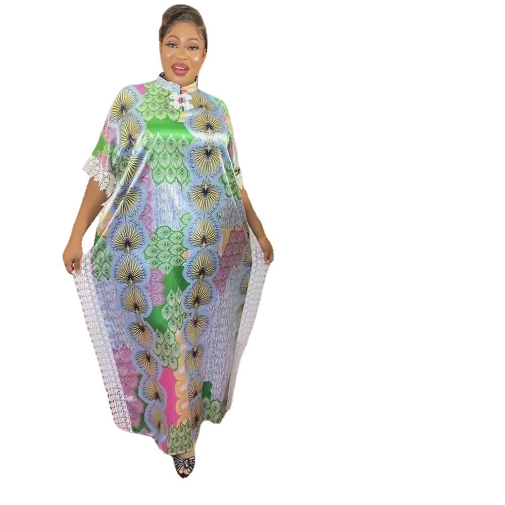 | nameOriginal | African Women's Dress ins Fashion Collar Batwing Sleeve Style Silk Digital Printing Stitching Lace Source Goods |