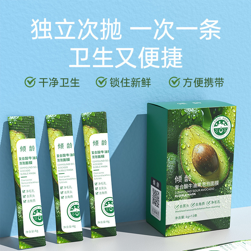 | nameOriginal | Age-leaning compound acid avocado bubble mask empty pores fast foaming brightening skin color disposable mask mud mask for women |
