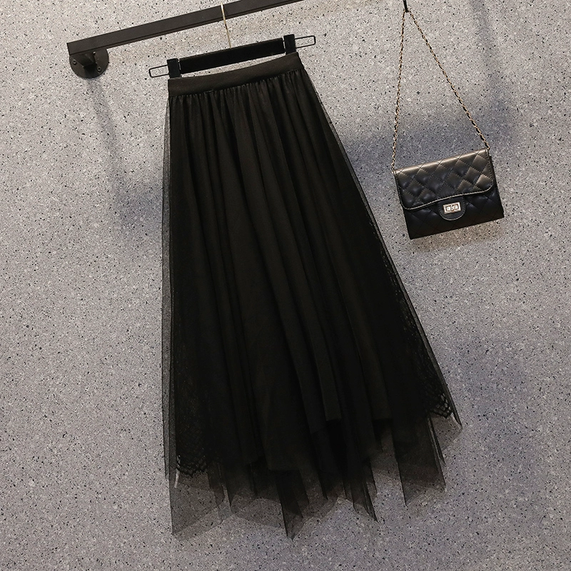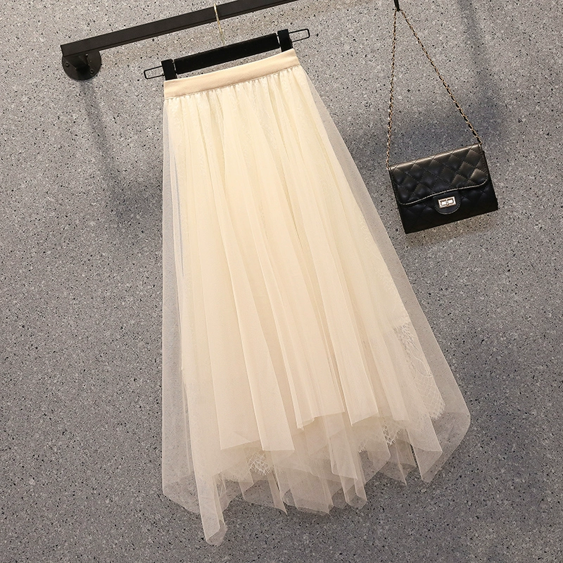 Age-reducing A-line high-end skirt with belly-covering mesh