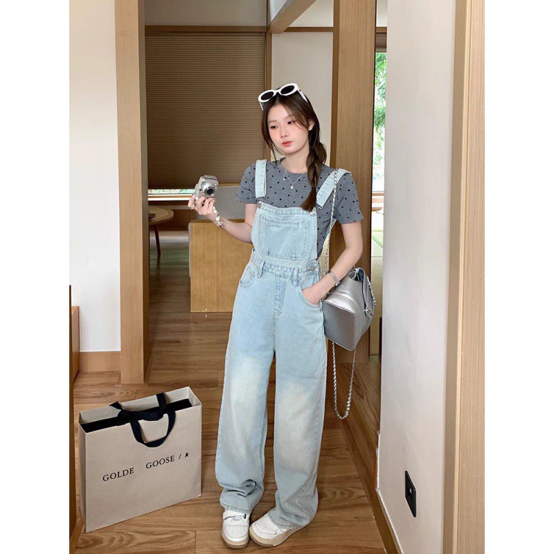 Age-reducing Blue Denim Overalls Women’s Summer 2024 New Retro Loose Slimming Casual Straight Long Pants