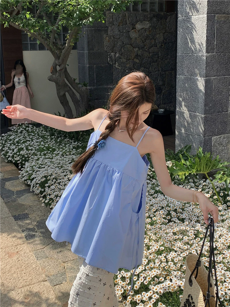 | nameOriginal | Age-reducing blue gentle casual clavicle exposed camisole |