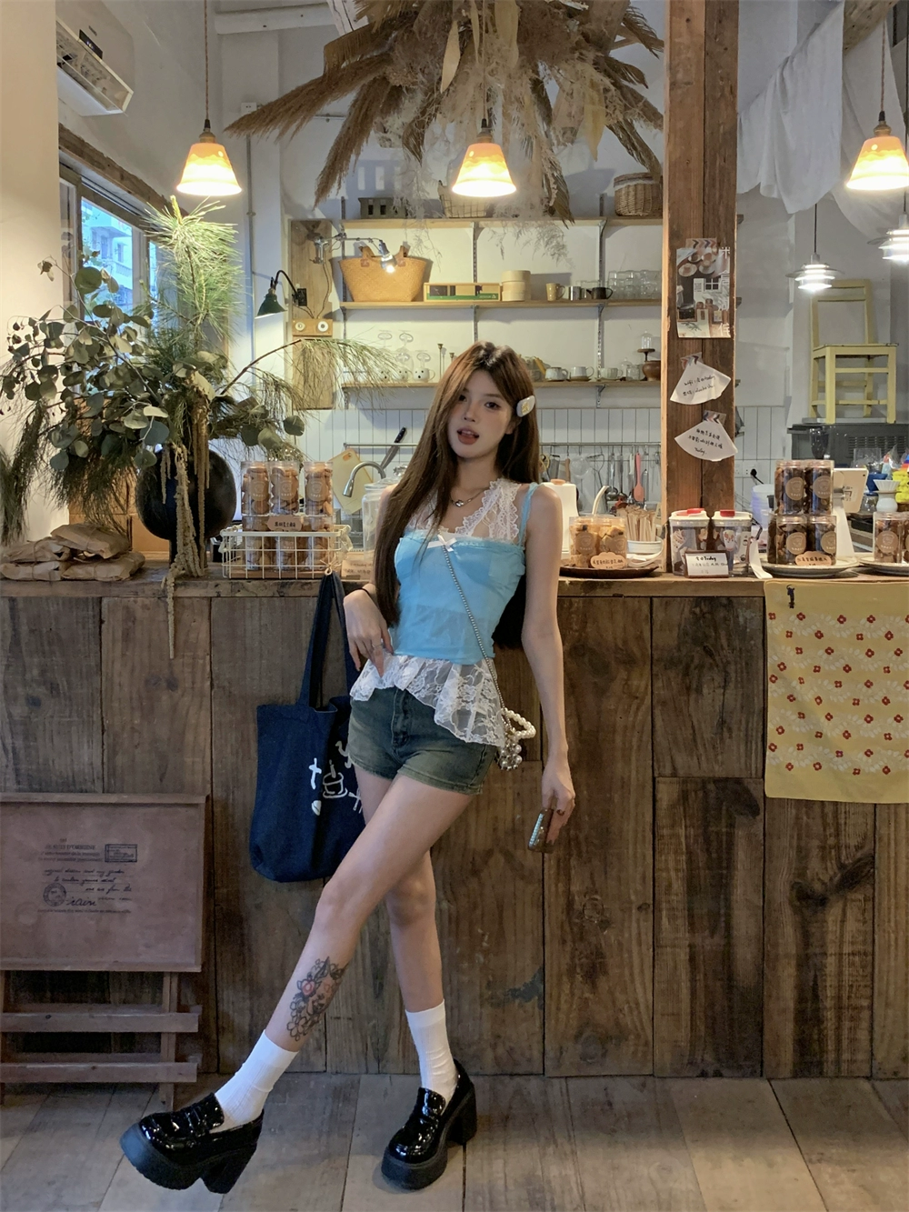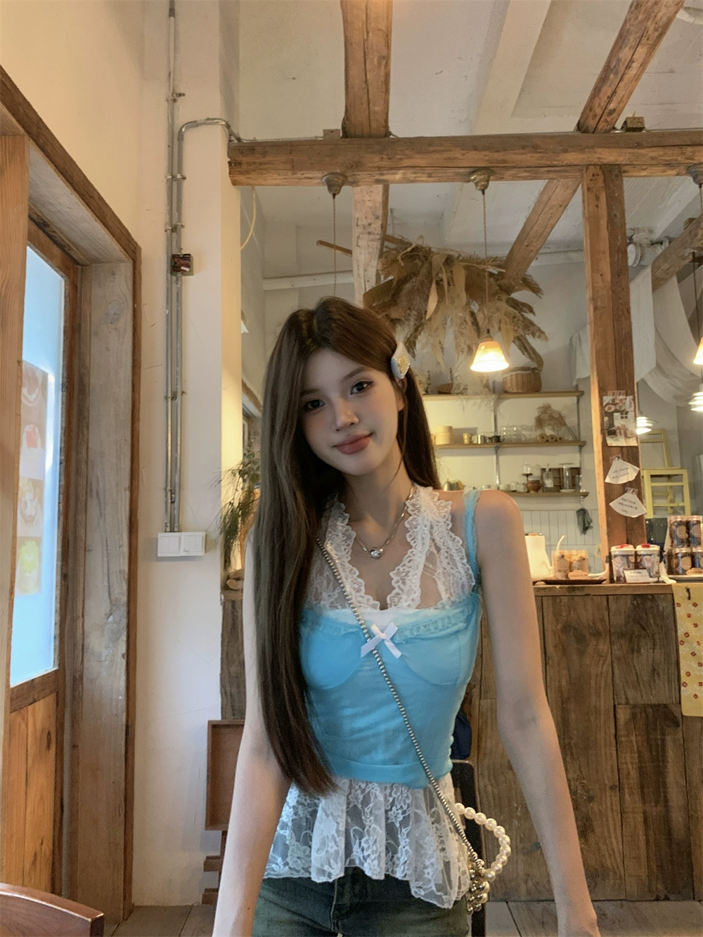 | nameOriginal | Age-reducing blue sling summer slim-fitting short bow |