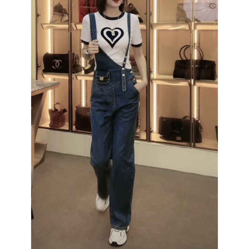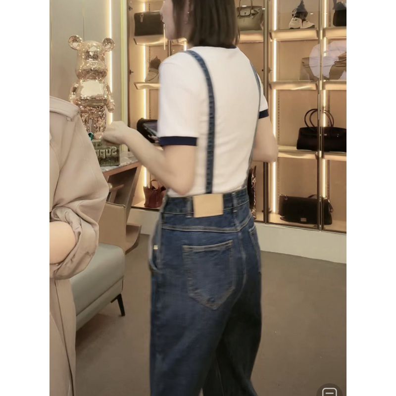 | nameOriginal | Age-reducing childish Denim sling pants girlfriend 2023 spring and summer fashion retro personality casual straight pants children |