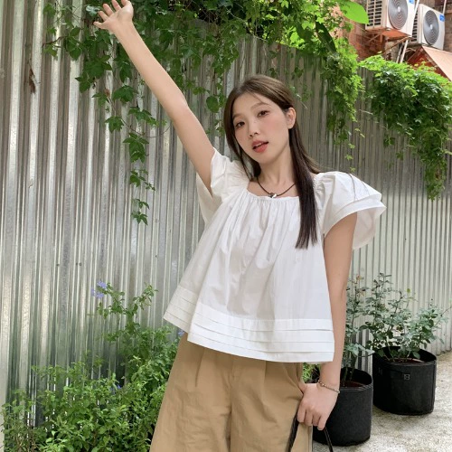 | nameOriginal | Age-reducing clavicle square collar shirt, small fresh top |