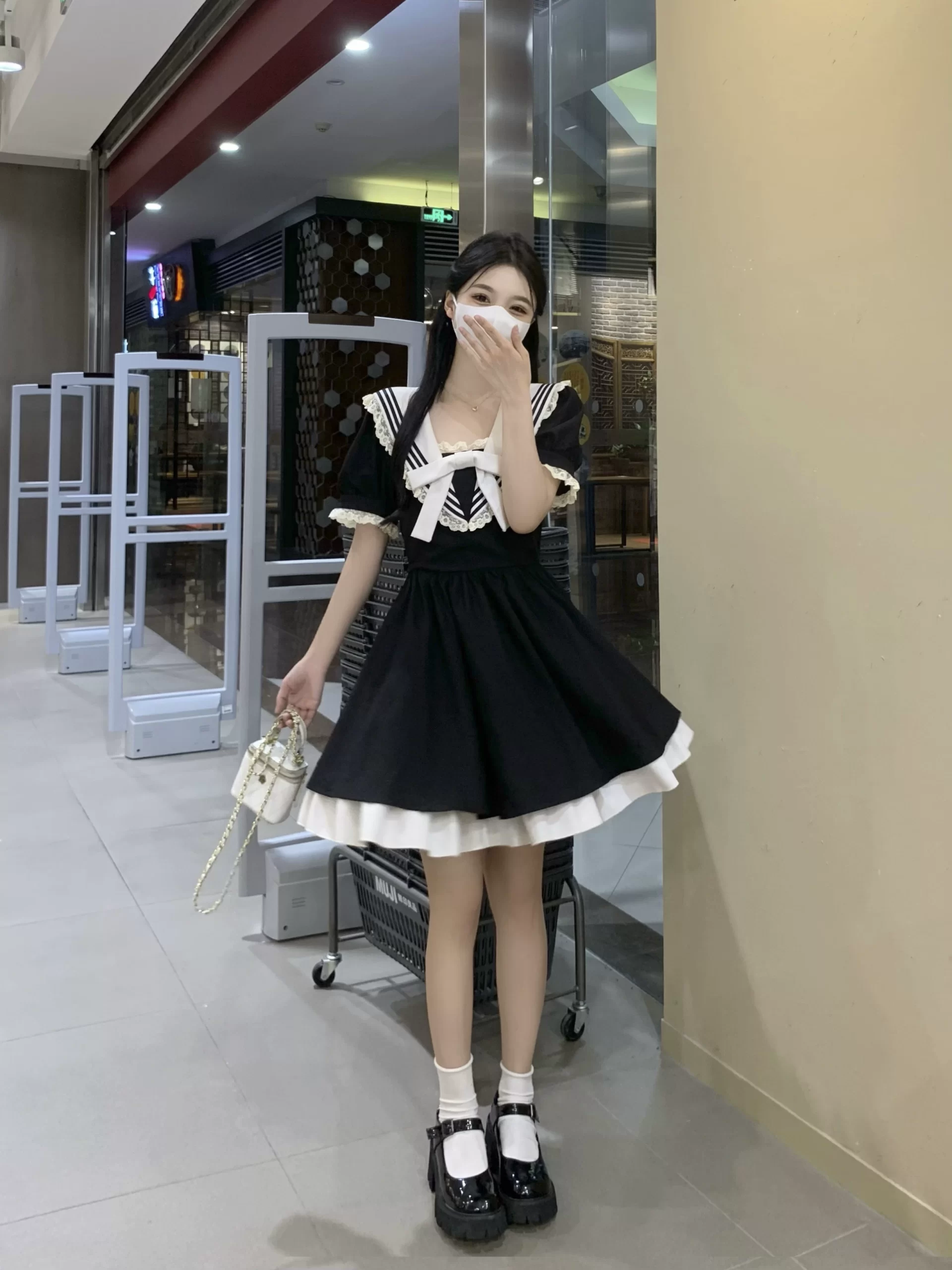 Age-reducing college style summer fat girl short-sleeved dress
