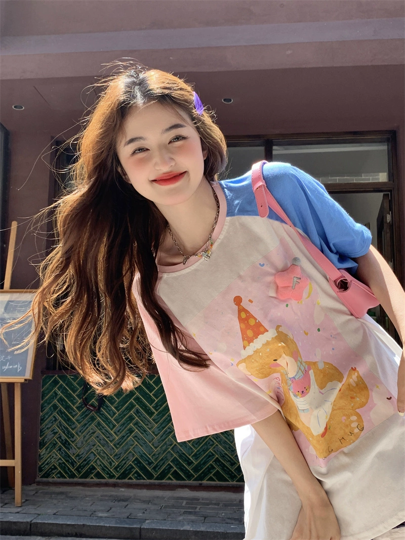 | nameOriginal | Age-reducing contrasting color summer cute printed round neck T-shirt |